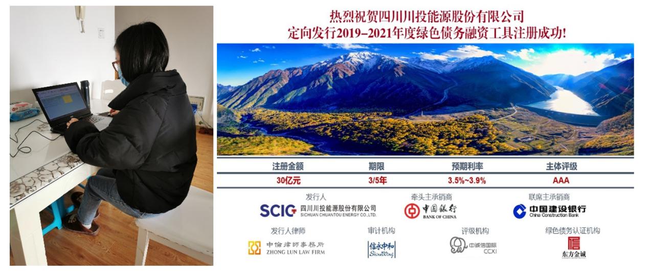 疫情期間,秦乙可需要每天不定時(shí)守在電腦前,沒(méi)有周內(nèi)周末之分,領(lǐng)導(dǎo)、同事、事務(wù)所、中介、銀行等等,什么時(shí)候需要資料、數(shù)據(jù),她便及時(shí)按要求提供。無(wú)論是私募債注冊(cè)資料提供,還是月度報(bào)表數(shù)據(jù)上報(bào)與財(cái)務(wù)分析,或者川投能源資金結(jié)算中心運(yùn)營(yíng)的推進(jìn)、2019年度審計(jì)資料的提供,均通過(guò)遠(yuǎn)程辦公方式順利完成。