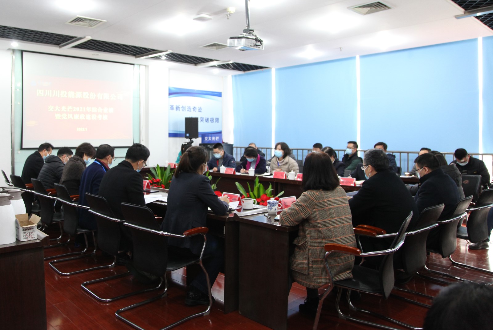 根據(jù)川投能源2021年度考核工作的統(tǒng)一部署,1月11日,川投能源黨委委員、財(cái)務(wù)總監(jiān)、考核組長劉好率隊(duì)赴交大光芒開展2021年度綜合業(yè)績暨黨風(fēng)廉政建設(shè)考核工作。川投能源考核組、交大光芒經(jīng)營班子、中層副職以上管理人員及一線員工代表參加考核會,川投能源證券事務(wù)部、資本運(yùn)營部經(jīng)理魯晉川主持會議。