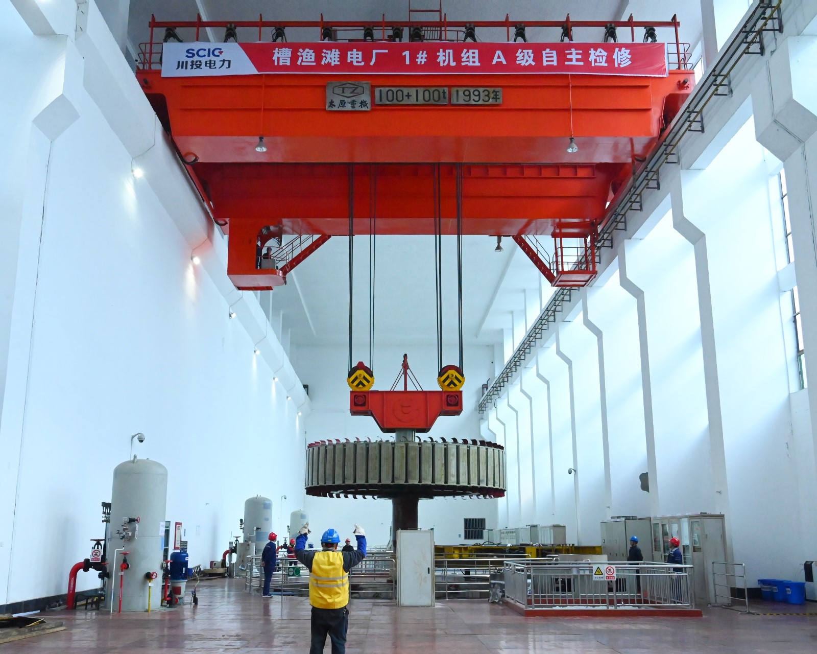 槽漁灘電廠按計劃開展了1#機組大修,2021年12月1日開工,2002年2月15日機組成功并網(wǎng)發(fā)電,檢修工期僅僅用了65天。參檢人員提前編制發(fā)電機轉(zhuǎn)子、轉(zhuǎn)輪吊裝方案,明確人員職責(zé),檢查并調(diào)校行車、吊具,規(guī)劃行徑路線,在檢修團隊通力協(xié)作下,均一次性安全順利吊出。2#、3#機組C修以及1#主變小修、2#主變大修也于4月5日全部完工;目前正持續(xù)推進線路保護改造工作。