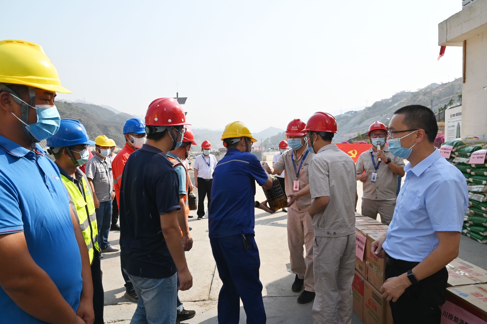 “五一”國(guó)際勞動(dòng)節(jié)前夕,4月30日上午,川投能源副總經(jīng)理、攀水電公司黨總支書記、董事長(zhǎng)徐孝剛帶隊(duì)來(lái)到銀江水電站愛(ài)心驛站,慰問(wèn)冒著高溫酷暑戰(zhàn)斗在銀江水電站工程一線的建設(shè)者們。慰問(wèn)活動(dòng)由公司黨總支委員、董事會(huì)秘書、工會(huì)主席鄧勇主持,公司在攀領(lǐng)導(dǎo)、黨員先鋒隊(duì)及志愿者服務(wù)隊(duì)共20余人參加慰問(wèn)。