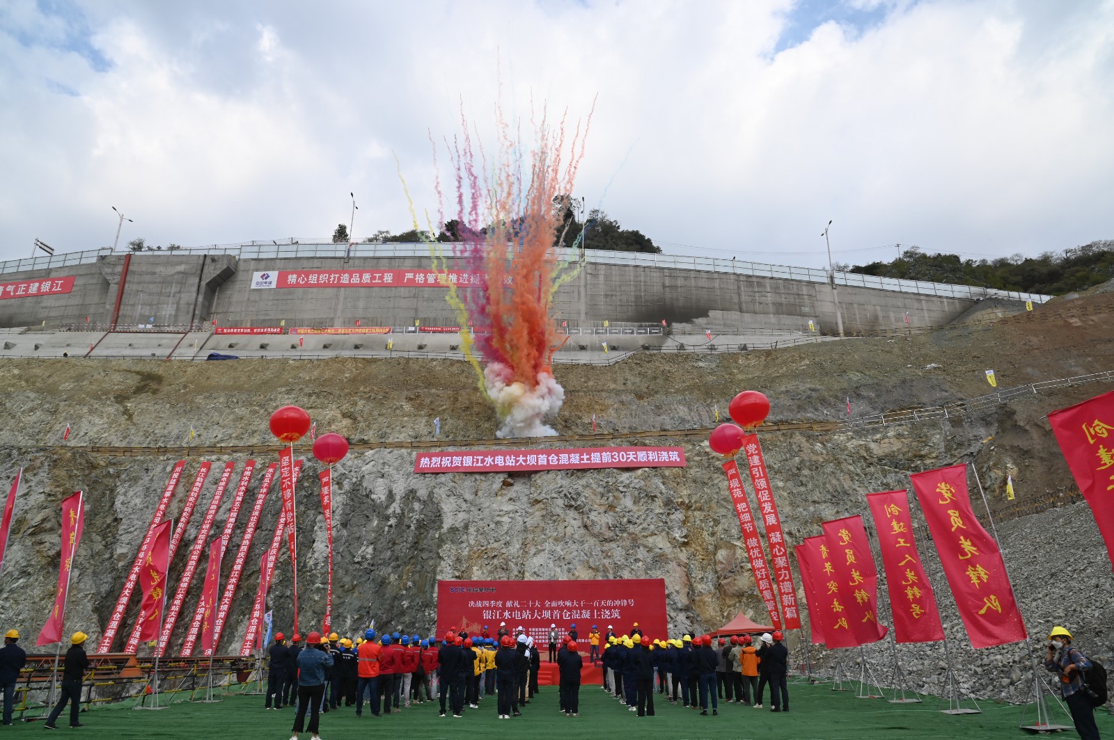 自黨的二十大勝利召開以來,攀水電公司深入學(xué)習(xí)黨的二十大精神,切實(shí)做好學(xué)習(xí)消化、理解深化、運(yùn)用轉(zhuǎn)化“三篇文章”,以迎難而上的韌勁、攻堅(jiān)克難的拼勁、只爭朝夕的干勁,全力推進(jìn)省委省政府和川投集團(tuán)、川投能源關(guān)于“決戰(zhàn)四季度、大干一百天”的重要決策部署,全力沖刺全年各項(xiàng)目標(biāo)任務(wù),于11月5日提前30天開始銀江水電站大壩首倉混凝土澆筑。