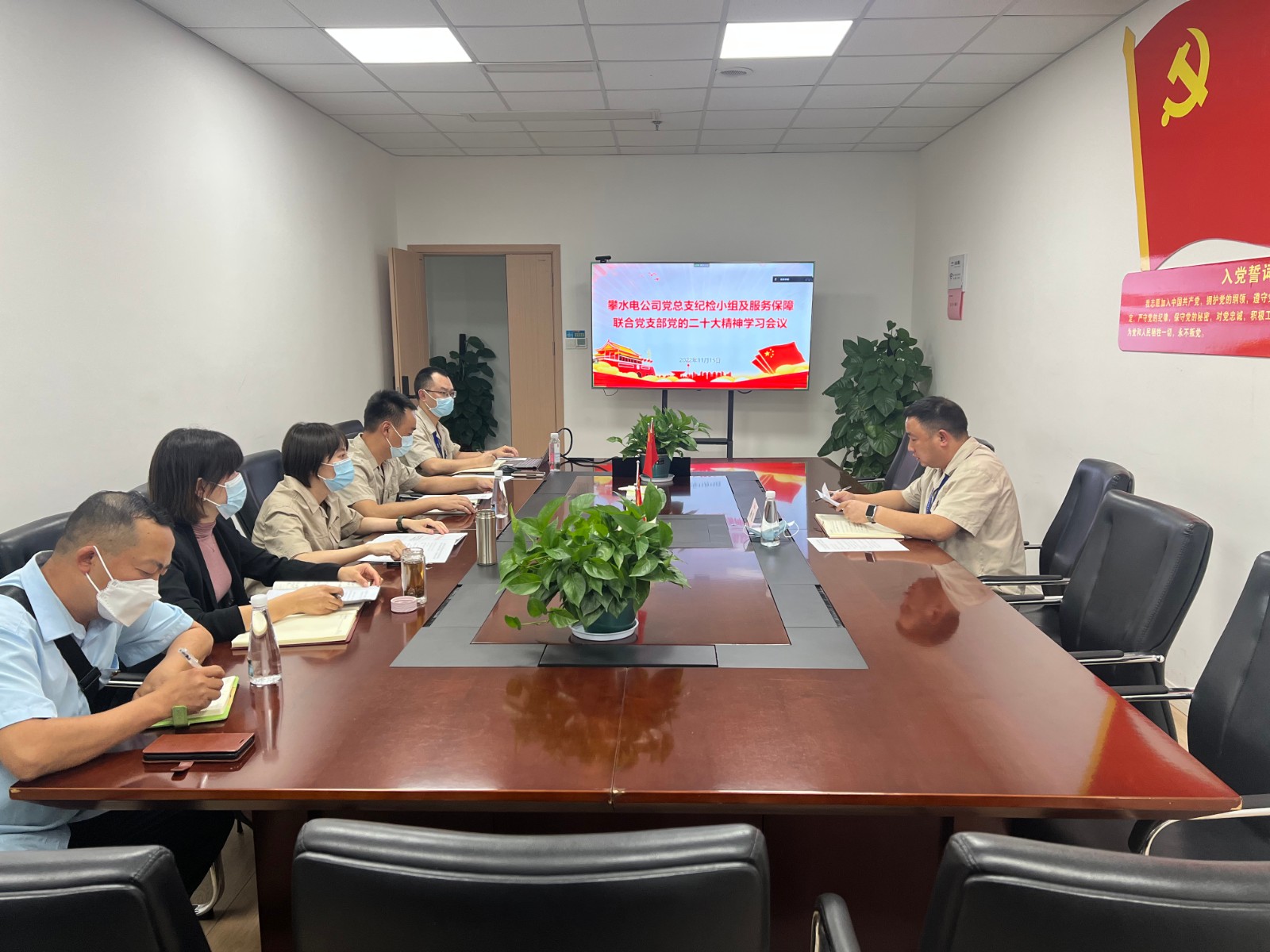 11月15日,攀水電公司黨總支紀檢小組長楊銳組織紀檢小組成員及服務保障聯(lián)合黨支部黨員,采取原文學習、重點解讀、討論交流等形式,對黨的二十大報告、二十大關于《中國共產黨章程(修正案)》的決議以及十九屆中央紀律檢查委員會向黨的二十次全國代表大會的工作報告等重要文件進行了再學習、再部署、再深入、再落實。楊銳強調,紀檢小組成員一是要率先垂范、先學先悟,不斷提高政治判斷力、政治領悟力、政治執(zhí)行力;二是要提高站位、做實監(jiān)督,把學習貫徹黨的二十大精神作為當前政治監(jiān)督的重中之重;三是要學以致用、解決問題,切實用黨的二十大精神關于全面從嚴治黨的新要求、新舉措、新指示指導實踐、推動工作;四是要立足崗位、堅定履職,持之以恒推進全面從嚴治黨,不折不扣落實監(jiān)督工作。