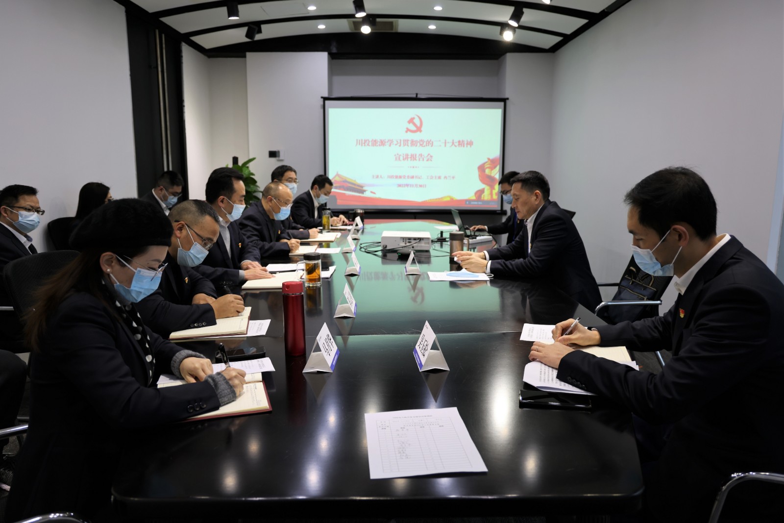 宣講采取現(xiàn)場和視頻相結合的方式,嚴格按防疫要求組織召開,川投電力領導班子成員、中層干部、黨員代表、民主黨派代表共30余人參加。