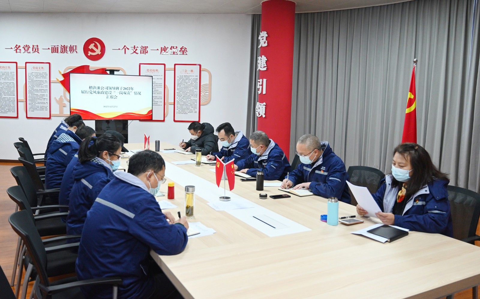 12月27日槽漁灘公司組織召開2022年度領(lǐng)導(dǎo)班子履行黨風(fēng)廉政建設(shè)“一崗雙責(zé)”情況匯報(bào)會。槽漁灘黨委委員、紀(jì)委書記謝愛東主持會議。公司領(lǐng)導(dǎo)班子成員參加會議。