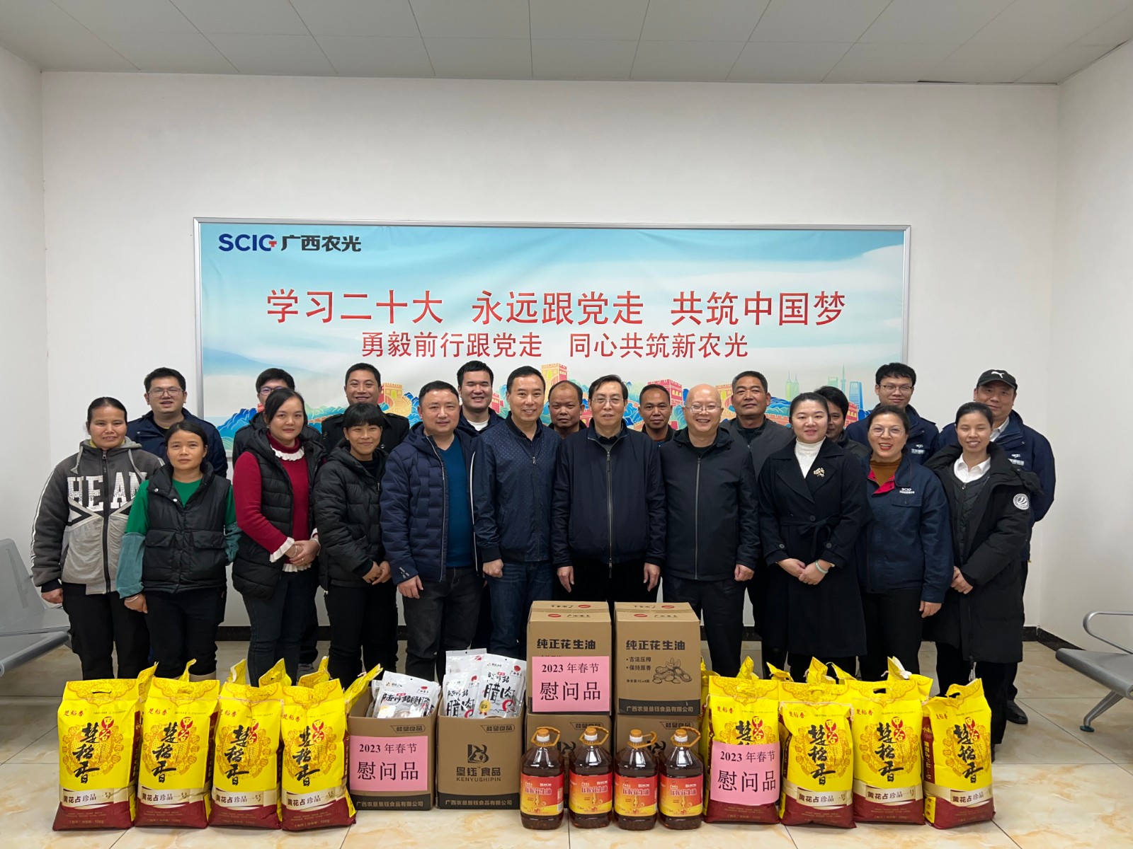 會(huì)后,徐孝剛、周軍對(duì)全體職工、運(yùn)維單位人員進(jìn)行了新春慰問(wèn),為大家送上了春節(jié)慰問(wèn)品,并代表攀新能源公司向廣西農(nóng)光公司和運(yùn)維單位全體員工致以新春的祝福!