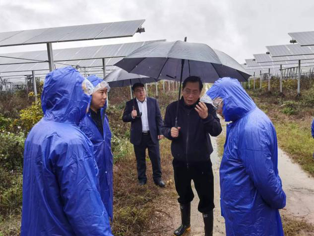 徐孝剛一行首先來(lái)到桂平光伏電站光伏現(xiàn)場(chǎng),冒著大雨檢查了光伏電站一期小龍蝦養(yǎng)殖基地、二期園藝基地和澳洲淡水龍蝦養(yǎng)殖基地等農(nóng)光互補(bǔ)項(xiàng)目的安全運(yùn)行情況;隨后來(lái)到桂平升壓站,在中控室聽(tīng)取了光伏電站2022年整體運(yùn)行狀況和發(fā)電量數(shù)據(jù)、安全管理、農(nóng)業(yè)發(fā)展等情況匯報(bào),徐孝剛強(qiáng)調(diào),電站生產(chǎn)運(yùn)行人員一定要嚴(yán)格按照國(guó)家安全生產(chǎn)法及電站安全管理制度的要求執(zhí)行、落實(shí)安全生產(chǎn)工作,牢牢守住安全生產(chǎn)的底線和紅線,確保電站安全管理可控、在控,穩(wěn)定運(yùn)行。