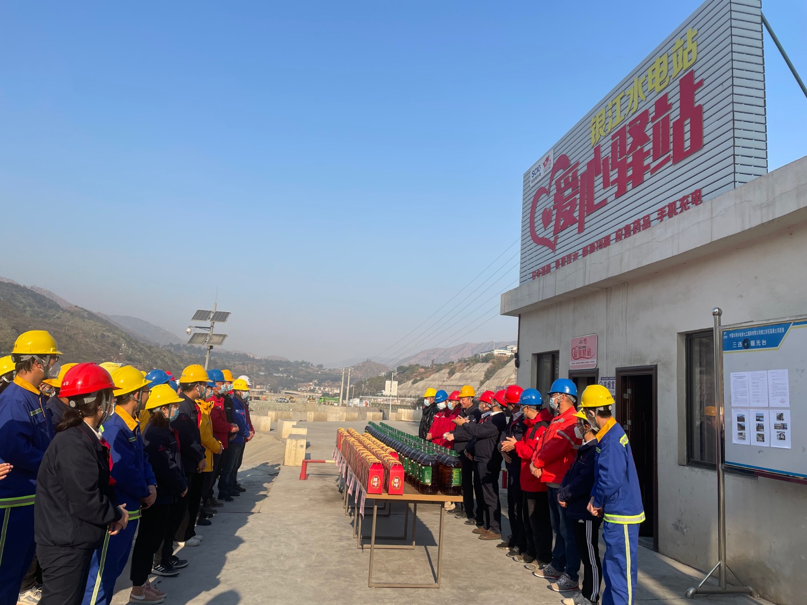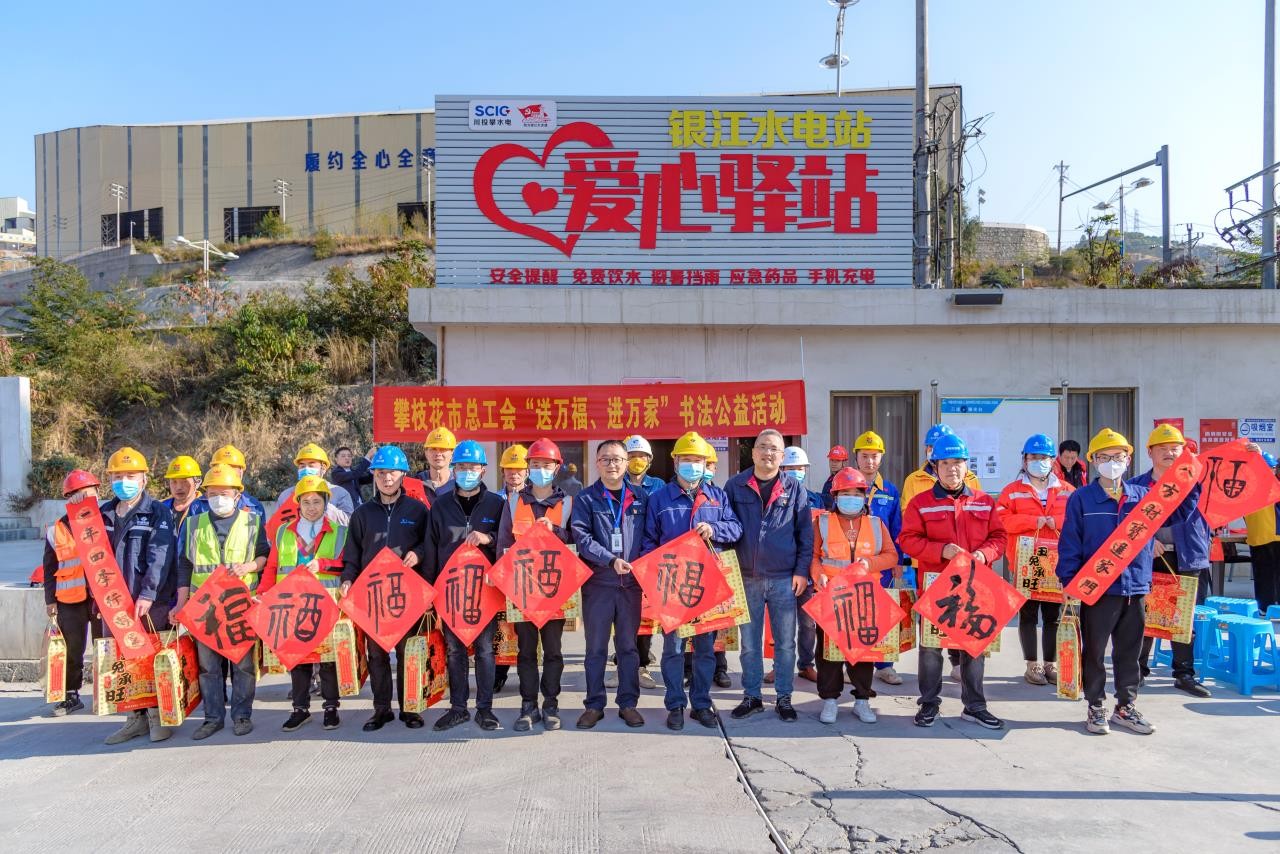 公司黨總支副書記、董事會秘書、工會主席鄧勇代表公司在銀江水電站“愛心驛站”慰問參建單位,向長江設計代表處、貴陽院監(jiān)理部、水電五局項目部、水電七局項目部、廣東源天項目部等16家參建單位一線職工送上春節(jié)慰問和臘肉制品禮盒套裝等慰問物資,向一線建設者致以親切的問候和誠摯的新春祝福,感謝大家對建設銀江水電站的艱辛付出和奉獻,叮囑大家要時刻銘記安全的重要性,做好春節(jié)值班值守工作。
