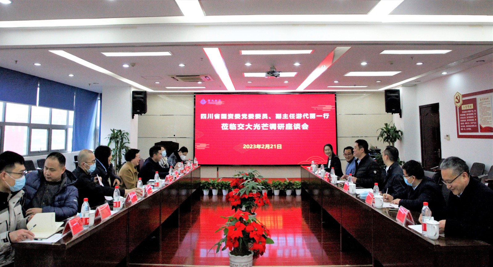 2月21日,省國資委黨委委員、副主任游代麗率隊赴交大光芒調(diào)研指導工作,省國資委巡視員符定平、財務監(jiān)督與評價處、監(jiān)督工作處、企業(yè)改革處一同參加調(diào)研。川投集團財務總監(jiān)黃勁、資金財務部部長葉光明隨同調(diào)研。交大光芒黨總支書記、總經(jīng)理劉成輝以及經(jīng)營班子成員、黨總支委員參加調(diào)研座談會。