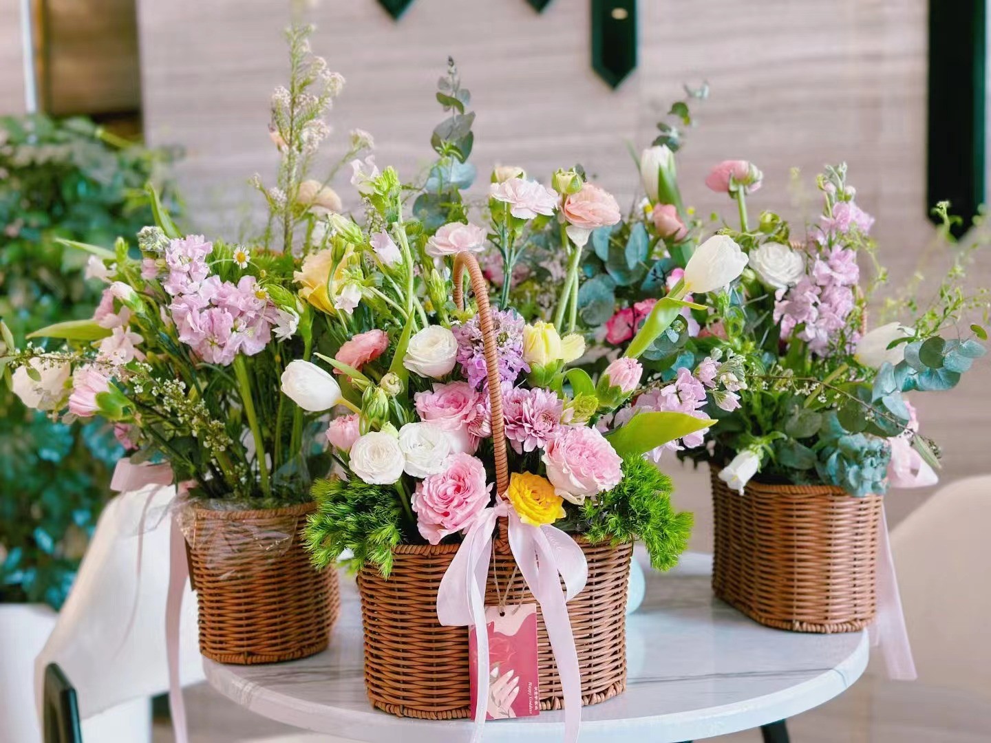 緊接著組織了DIY插花活動(dòng),邀請專業(yè)花藝師現(xiàn)場講解鮮花常識(shí)、色彩搭配、保鮮方法、花枝修剪和插花的基本技巧。在花藝師指導(dǎo)下,大家躍躍欲試,邊學(xué)邊交流,紛紛行動(dòng)起來,開啟鮮花“綻放”之旅,現(xiàn)場春意盎然、熱鬧非凡,一雙雙巧手將各色花卉配以枝葉點(diǎn)綴,讓一把把散落的花材變成了美麗靈動(dòng)又具有個(gè)性特色的花藝作品,大家喜笑顏開,擁抱著自己精心制作的花籃合影留念。