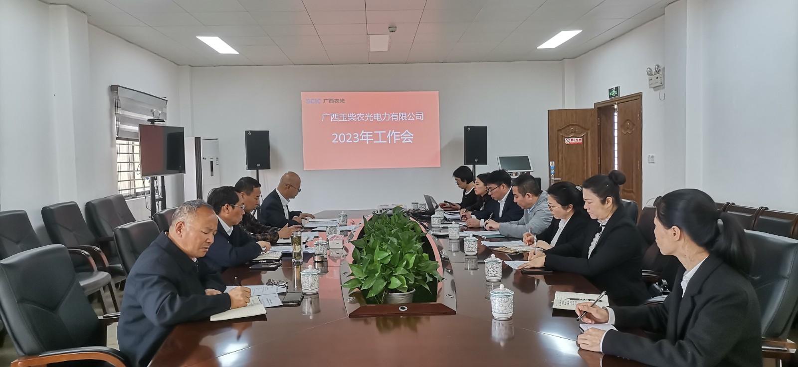 隨后,徐孝剛一行在桂平光伏電站升壓站二樓會議室召開了廣西農(nóng)光公司2023年工作會,會議由攀新能源公司公司、廣西農(nóng)光公司財務(wù)總監(jiān)王俊森主持,公司全體員工(兼職)、運維單位代表參加會議。會議學(xué)習(xí)傳達(dá)了川投集團、川投能源、攀新能源公司2023年工作會精神;覃鳳荏作了廣西農(nóng)光公司《2022年工作總結(jié)及2023年工作計劃》的報告,重點匯報了2022年度主要指標(biāo)完成情況、主要工作舉措及成效、存在的問題和困難以及2023年工作打算等;王俊森代表公司領(lǐng)導(dǎo)班子作廉潔從業(yè)公開承諾;公司主要領(lǐng)導(dǎo)分別與部門代表簽訂了2023年《“雙廉”責(zé)任書》《部門目標(biāo)責(zé)任書》。