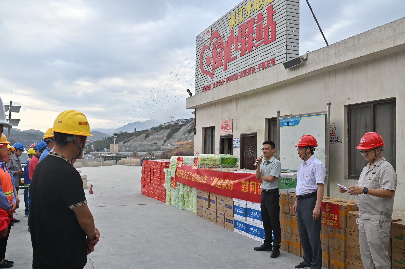 6月6日上午,攀枝花市總工會(huì)張平副主席一行來(lái)到銀江水電站“愛心驛站”,慰問(wèn)奮戰(zhàn)在極端高溫下的一線作業(yè)人員和管理人員。攀水電公司黨總支書記、董事長(zhǎng)徐孝剛,參建單位代表及公司志愿者服務(wù)隊(duì)參加慰問(wèn),公司黨總支副書記、董事會(huì)秘書、工會(huì)主席鄧勇主持活動(dòng)。