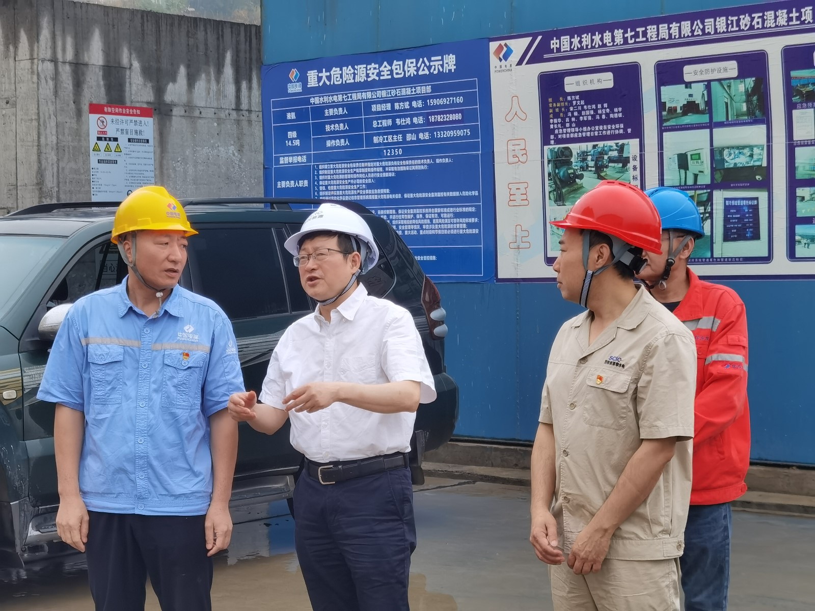 楊平一行深入銀江水電站施工現(xiàn)場,查看安全風險管控情況,了解工程建設及安全生產情況,結合安全生產強化年、重大事故隱患專項排查整治、防汛減災等工作,對現(xiàn)場液氨制冷系統(tǒng)等重點部位、重點設備、施工作業(yè)面的安全措施落實情況開展督導檢查。