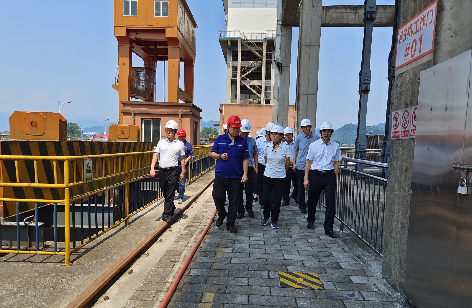 祝春秀一行實地察看大壩前池、泄洪沖砂閘等水工建筑物,聽取了電廠防汛減災、生態(tài)流量下泄和漂浮物打撈工作情況匯報,對電廠相關工作給予充分肯定,并根據(jù)視察情況提出意見和建議。