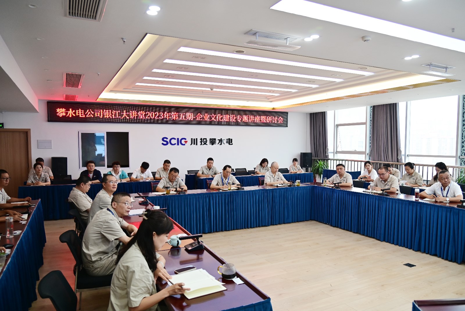 為推動(dòng)學(xué)習(xí)貫徹習(xí)近平新時(shí)代中國(guó)特色社會(huì)主義思想主題教育走深走實(shí),全面落實(shí)黨的二十大精神,堅(jiān)定文化自信,不斷適應(yīng)新時(shí)代國(guó)企文化建設(shè)的新形勢(shì)、新任務(wù)和新要求,充分發(fā)揮企業(yè)文化在推進(jìn)企業(yè)高質(zhì)量發(fā)展中的積極作用,7月30日,攀水電公司組織開展了2023年第五期銀江大講堂——企業(yè)文化建設(shè)專題講座暨研討會(huì),會(huì)議邀請(qǐng)到了四川省市場(chǎng)監(jiān)督管理學(xué)會(huì)理事、攀枝花學(xué)院經(jīng)濟(jì)與管理學(xué)院副教授顧福珍授課。川投能源副總經(jīng)理、公司黨總支書記、董事長(zhǎng)、企業(yè)文化建設(shè)領(lǐng)導(dǎo)小組組長(zhǎng)徐孝剛、公司在攀領(lǐng)導(dǎo)及全體員工共計(jì)40余人參加會(huì)議。
