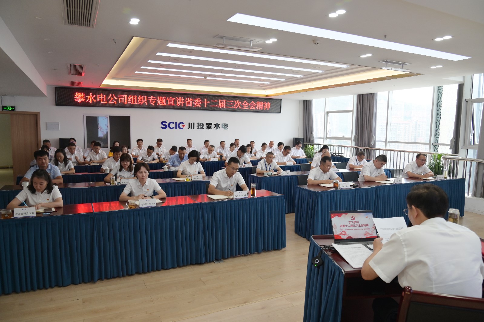 為進一步引導(dǎo)廣大職工深入學(xué)習(xí)貫徹省委十二屆三次全會重大決策部署,激發(fā)大家干事創(chuàng)業(yè)、堅定推動高質(zhì)量發(fā)展的精氣神,8月19日下午,川投能源副總經(jīng)理、攀水電公司黨總支書記、董事長徐孝剛進行省委十二屆三次全會精神專題宣講。公司全體黨員、職工,各參建單位黨員職工代表共計45人參加此次宣講會。