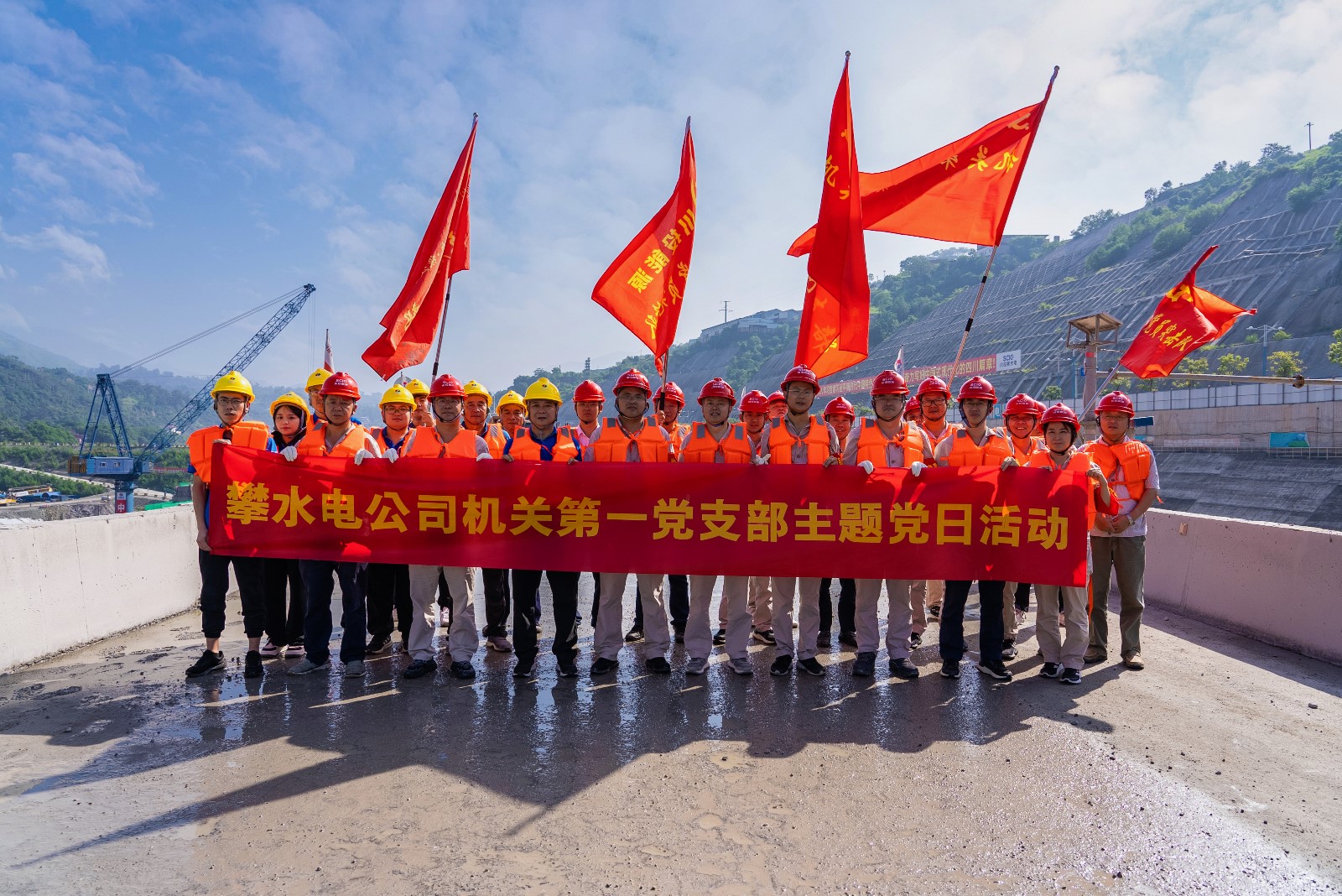 為認(rèn)真貫徹落實近期中共中央政治局常務(wù)委員會研究部署防汛抗洪救災(zāi)和災(zāi)后恢復(fù)重建工作時,關(guān)于“基層黨組織和廣大黨員干部要充分發(fā)揮戰(zhàn)斗堡壘作用和先鋒模范作用,在防汛抗洪救災(zāi)一線挑重擔(dān)、當(dāng)先鋒、打頭陣”的重要指示要求。9月3日,攀水電黨總支在銀江水電站施工現(xiàn)場組織開展9月主題黨日活動,機關(guān)第一、第二黨支部、水電五局銀江項目部黨支部黨員、入黨積極分子、職工志愿者共計30余人參加。