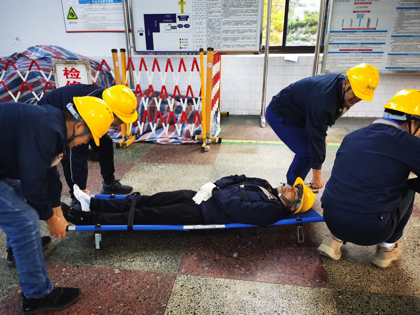 本次應急演練以檢修現(xiàn)場起重吊裝作業(yè)為背景,模擬了起吊作業(yè)時檢修人員受傷場景:1#機組檢修現(xiàn)場起重作業(yè)時,起重繩索傾斜造成油桶滑落,砸傷檢修工作人員左腳。聽到“傷員”大聲呼救后,行車駕駛員立即停止操作,檢修工作負責人隨即下令停止檢修班所有工作,并組織現(xiàn)場檢修人員組成救援小組,在確保自身安全的情況下開展現(xiàn)場救援。切斷起重機電源、協(xié)助“傷員”脫險并實施急救、撥打120急救電話、險情即時規(guī)范逐級上報、應急領導小組相關人員現(xiàn)場指揮救援,一項項流程井然有序推進,一個個環(huán)節(jié)嚴絲合縫銜接,整個演練過程指揮順暢、組織嚴密,規(guī)范重現(xiàn)了事故處理、應急預案響應的全部流程,是安全生產活動的一次生動實踐。