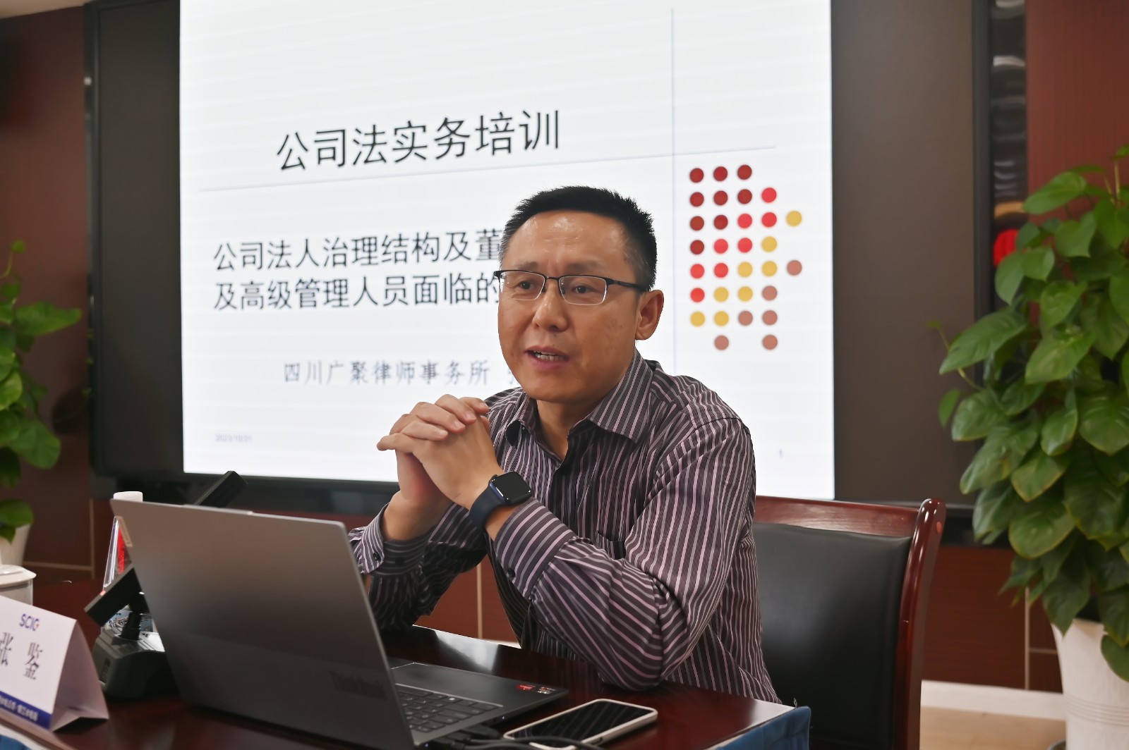 公司還邀請了攀枝花學院法學院專業(yè)教師、資深律師張鑒講授“公司法實務”,他從公司法人治理結構、公司章程與公司法、董監(jiān)事的組成和職責、董監(jiān)事及高管任職資格和義務、司法實踐中涉及董監(jiān)事和高管人員的案例分析、公司法的修訂(2023年)七個方面進行了深層次講解。在提問環(huán)節(jié),參訓人員熱情高漲,絡繹不絕的提出一系列與工作、生活息息相關的法律方面問題,張律師耐心的一一為大家解答,具有很強的專業(yè)性、實用性,獲得了參訓人員的一致好評。