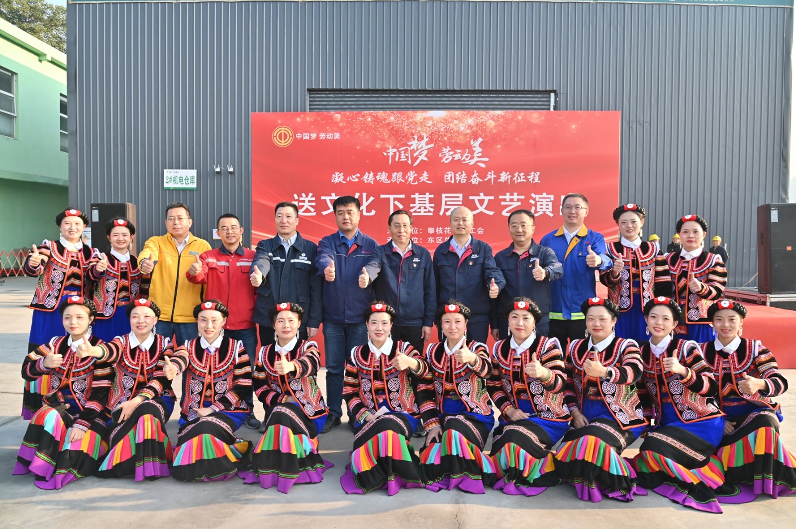 為深入學(xué)習(xí)貫徹黨的二十大精神、習(xí)近平總書記來(lái)川視察重要指示精神,11月29日上午,由攀枝花市總工會(huì)主辦,東區(qū)總工會(huì)、攀水電公司承辦的“中國(guó)夢(mèng)·勞動(dòng)美——凝心鑄魂跟黨走 團(tuán)結(jié)奮斗新征程”2023年“送文化下基層”文藝演出在銀江水電站工地火熱開展。川投能源副總經(jīng)理,攀水電公司黨總支書記、董事長(zhǎng)徐孝剛出席活動(dòng),攀枝花市總工會(huì)、東區(qū)總工會(huì)、攀水電公司及參建單位200余人參加。