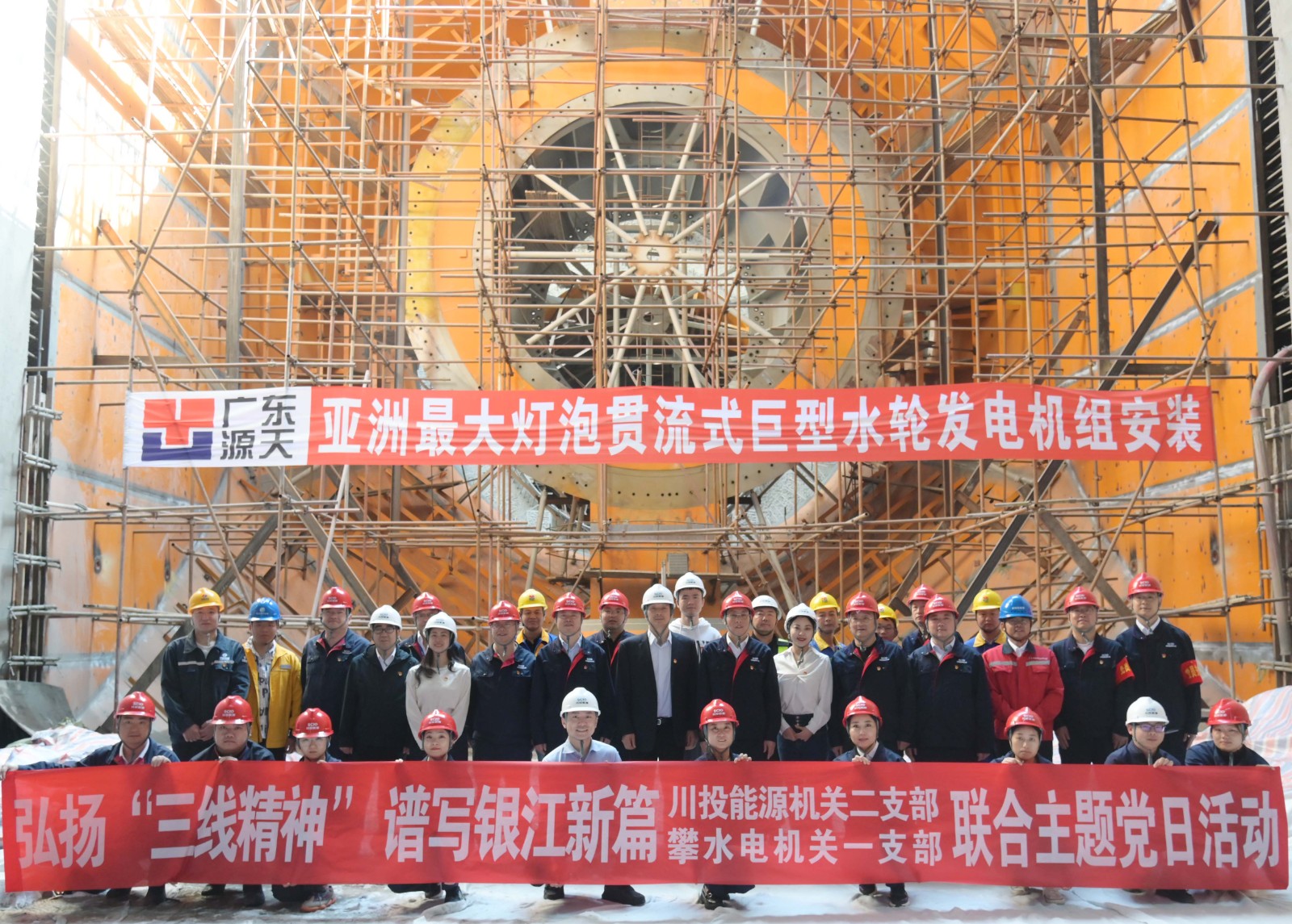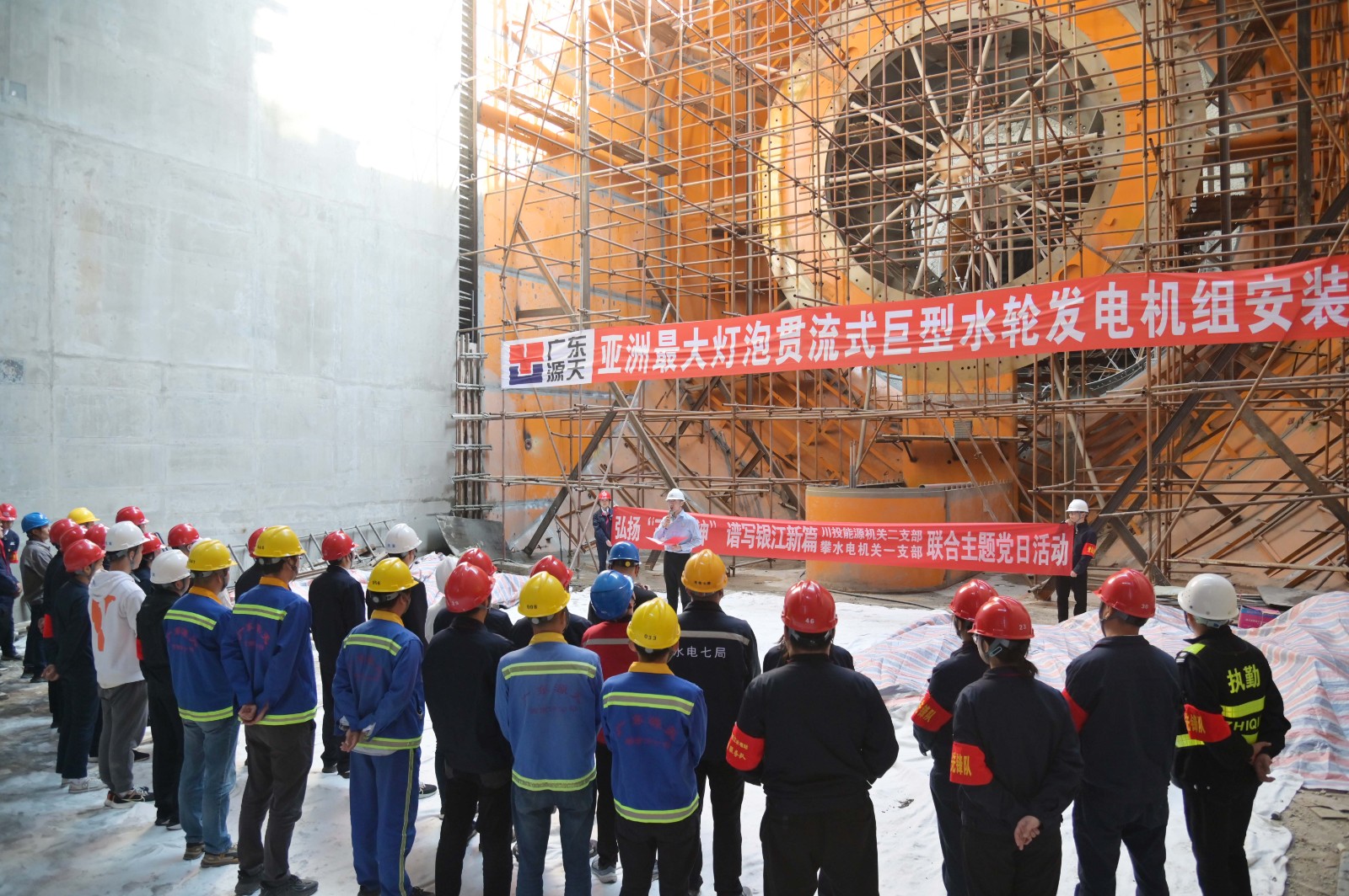 在銀江水電站亞洲最大燈泡貫流式巨型水輪發(fā)電機(jī)組安裝現(xiàn)場,川投能源機(jī)關(guān)二支部書記李睿講授了工地微黨課《承諾》,與大家一起重溫銀江水電站建設(shè)過程中的感人故事?;顒又校煨傆猛ㄋ滓锥恼Z言,為現(xiàn)場同志介紹了銀江水電站的建設(shè)特點、施工情況和下一步工程建設(shè)計劃,并號召全體黨員和團(tuán)員青年要圍繞“保一爭二”提前發(fā)電重要目標(biāo),團(tuán)結(jié)一心、勇挑重?fù)?dān)、善作善成。