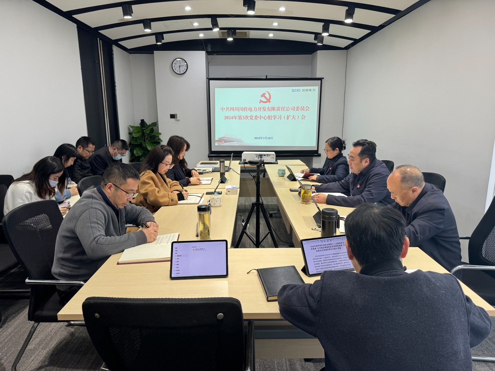 會議學習了習近平在中共中央政治局第十二次集體學習時的重要講話精神、《習近平法治思想學習綱要》《中國共產(chǎn)黨巡視工作條例》、2024年全國兩會精神和川投集團2024年工作會議精神。