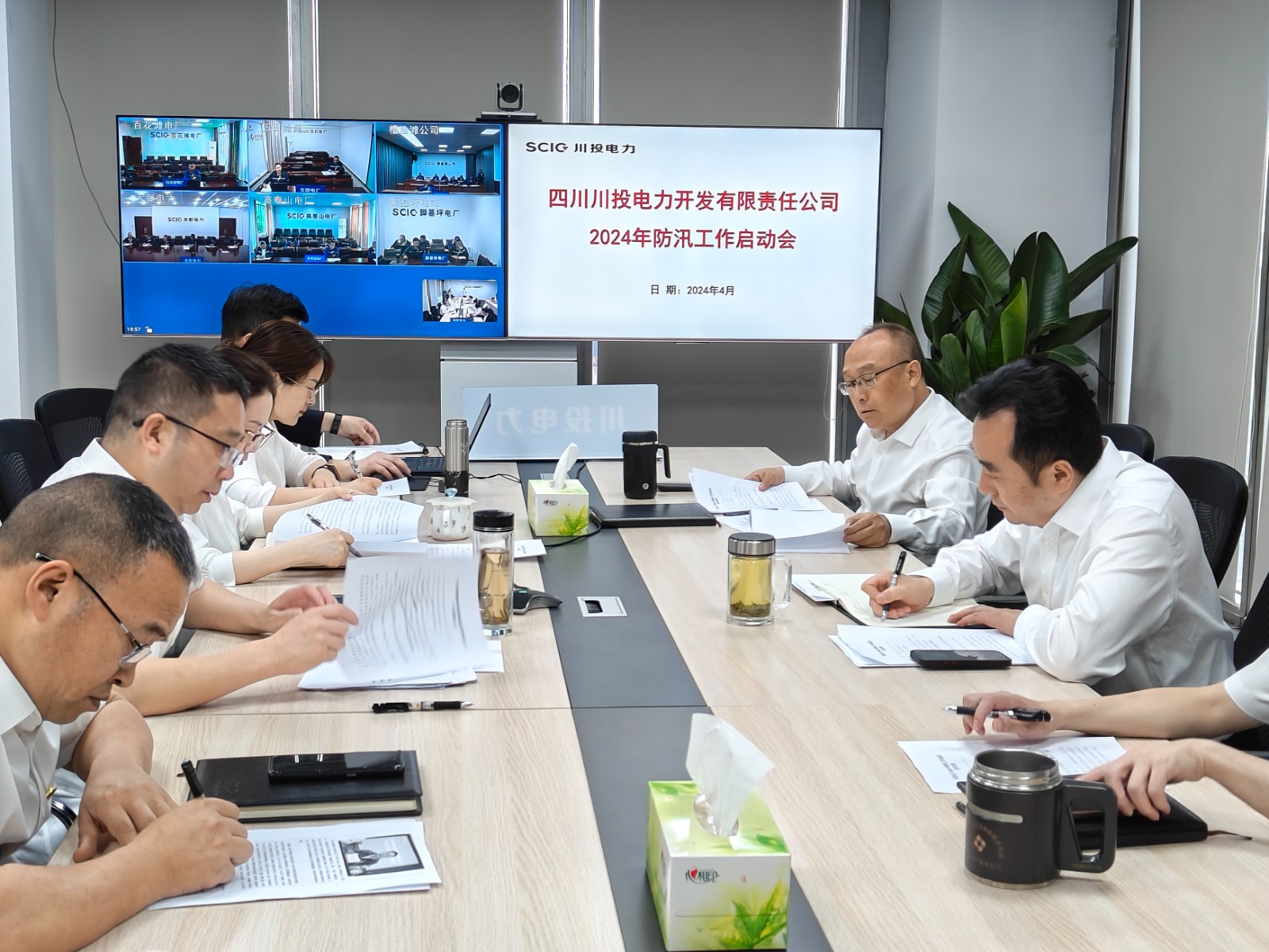 2024年4月23日上午,川投電力召開2024年防汛工作啟動會,公司黨委書記、董事長、防汛領(lǐng)導小組組長楊濤,黨委副書記、總經(jīng)理、防汛領(lǐng)導小組常務(wù)副組長蔡承德出席并講話,副總經(jīng)理、防汛領(lǐng)導小組副組長、防汛辦公室主任王偉主持會議。