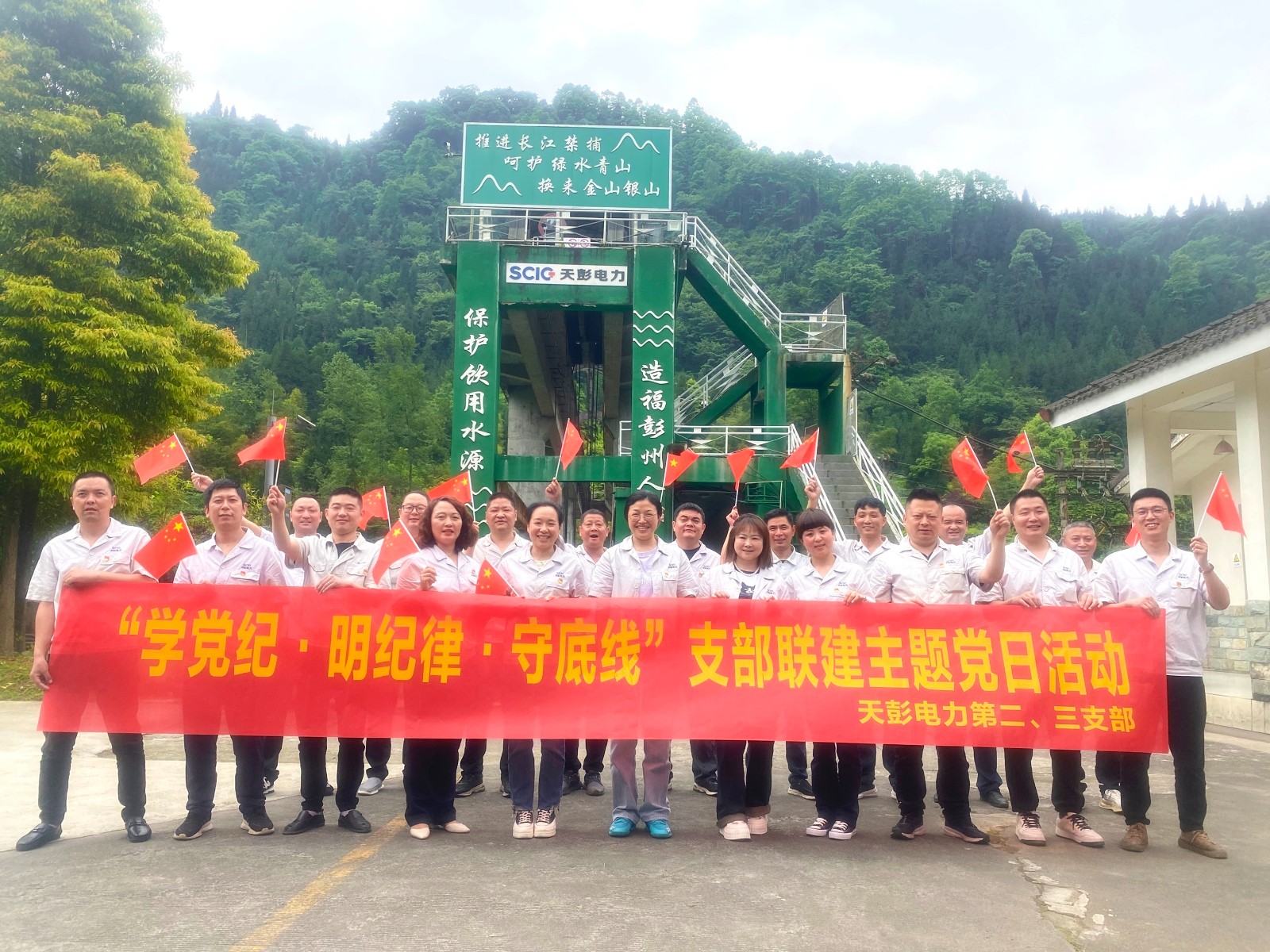 為深入推進(jìn)黨紀(jì)學(xué)習(xí)教育,學(xué)習(xí)貫徹新修訂《中國(guó)共產(chǎn)黨紀(jì)律處分條例》,增強(qiáng)黨員干部紀(jì)律規(guī)矩意識(shí)和拒腐防變能力,5月22日,天彭電力第二、三支部在沙金車間鳳鳴湖大壩開展了“學(xué)黨紀(jì)·明紀(jì)律·守底線”支部聯(lián)建主題黨日活動(dòng),第二、三支部全體黨員、入黨積極分子參加活動(dòng)。