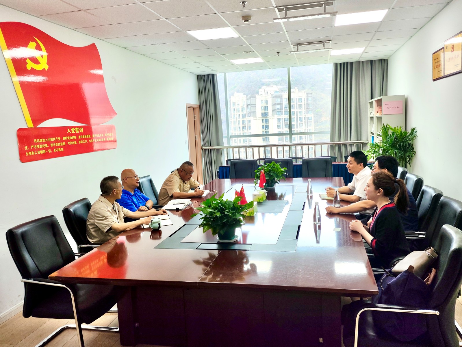 首先在攀水電公司辦公地召開了見面會。會上,王俊森介紹了銀江水電站的工程建設(shè)特點、現(xiàn)階段施工重點和安全生產(chǎn)組織機構(gòu)及人員配置情況等;尤其強調(diào)工程質(zhì)量及安全是今年“保一爭二”目標實現(xiàn)的基礎(chǔ)。公司不斷采取措施提高全員安全責(zé)任意識,強化質(zhì)量管控,確保質(zhì)量安全可控在控,堅決杜絕安全事故發(fā)生,為全面實現(xiàn)今年發(fā)電目標落地筑牢防線。黃超對攀水電公司長期以來對平安產(chǎn)險四川分公司的支持和信任致以感謝。他表示,平安產(chǎn)險四川分公司為提高投保企業(yè)抗風(fēng)險能力,協(xié)助開展風(fēng)險減量和管控工作,因此在汛期到來之際,組織此次重大客戶工程項目的專項風(fēng)險巡訪。