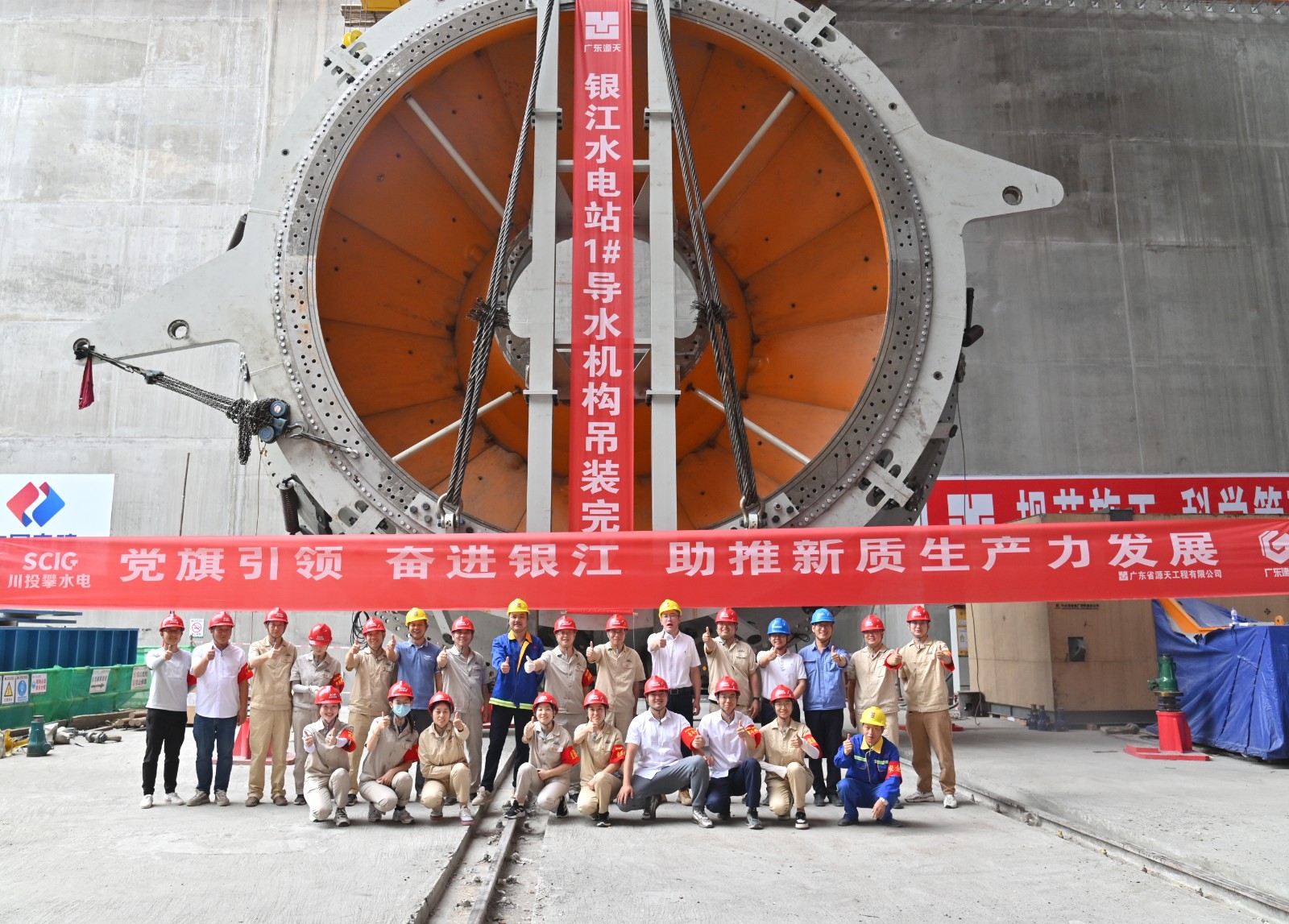 2024年5月30日,銀江水電站1#機(jī)組導(dǎo)水機(jī)構(gòu)順利吊裝就位,標(biāo)志著銀江水電站首臺(tái)機(jī)組全面進(jìn)入總裝階段,為年底實(shí)現(xiàn)投產(chǎn)發(fā)電目標(biāo)邁出關(guān)鍵一步。