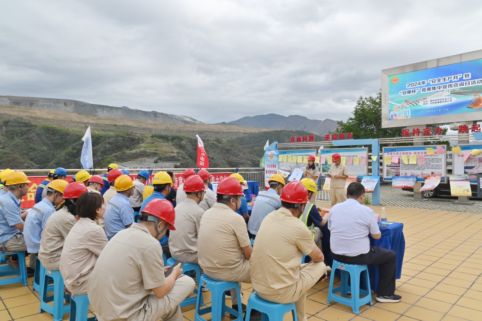 為認真落實各級政府、川投集團關(guān)于安全生產(chǎn)的重大決策部署,進一步提升攀水電公司及銀江水電站各參建單位的安全意識和避險逃生能力,營造關(guān)注和支持安全生產(chǎn)的濃厚氛圍,6月14日上午,攀水電黨總支下轄各支部聯(lián)合開展了2024年“安全生產(chǎn)月”暨“安康杯”競賽集中宣傳咨詢主題黨日活動,攀枝花市東區(qū)總工會、攀水電公司各支部黨員、團青志愿者及參建單位代表共計50余人參加活動。
