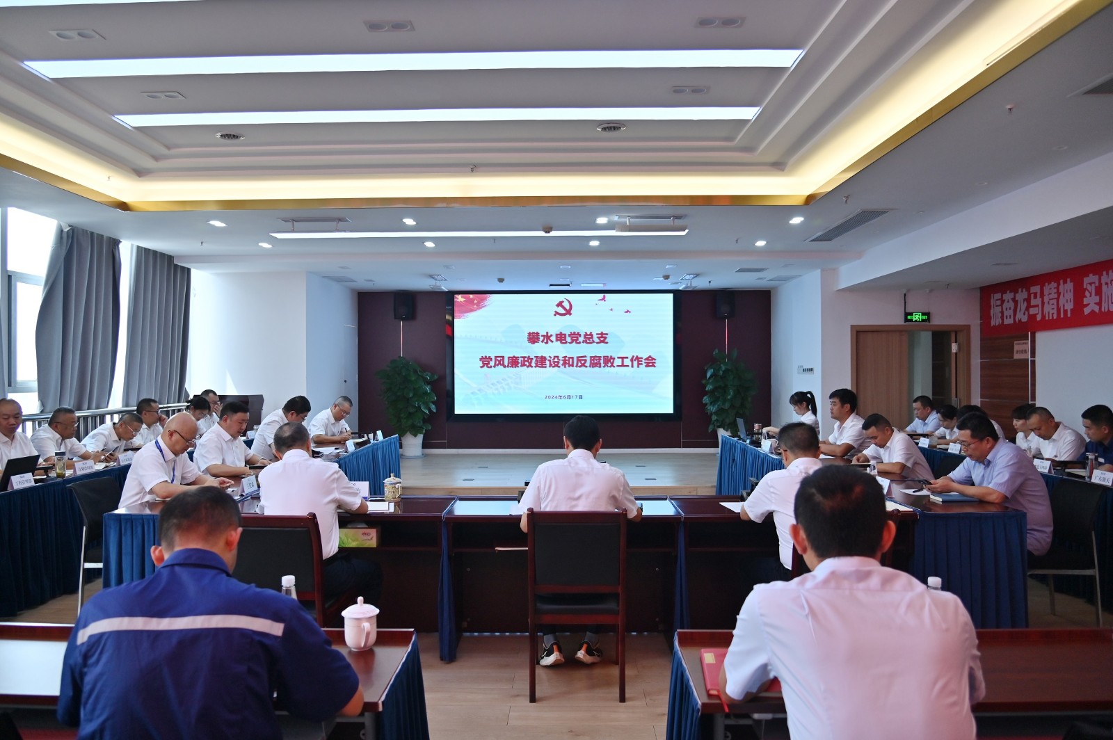 6月17日,攀水電黨總支組織召開黨風(fēng)廉政建設(shè)和反腐敗工作會。會議由黨總支委員、紀(jì)檢小組長楊銳主持,川投能源副總經(jīng)理、攀水電黨總支書記、董事長徐孝剛和其他領(lǐng)導(dǎo)班子成員出席會議,主要參建單位負(fù)責(zé)人以及公司各部門負(fù)責(zé)人,各支部書記、紀(jì)檢委員,黨群工作部、紀(jì)檢工作部等20余人列席會議。