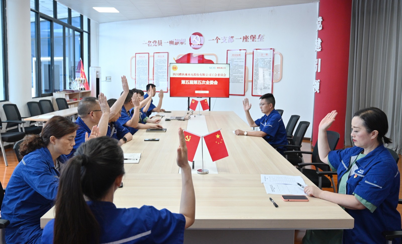 7月3日,槽漁灘公司召開工會五屆八次會員代表大會暨五屆三次職工代表大會,公司黨委書記、董事長何光富出席會議,黨委副書記、工會主席陳堯主持會議,黨委班子成員、工會會員代表、職工代表共計39人參加。