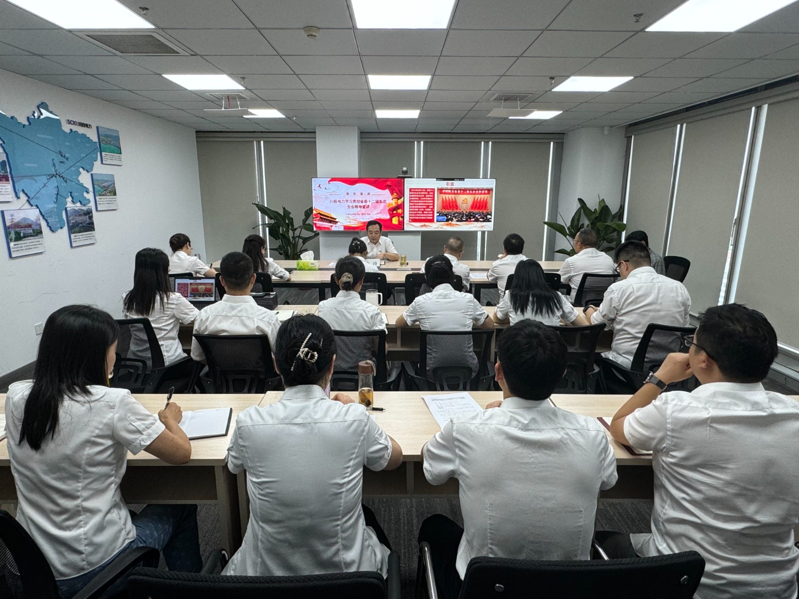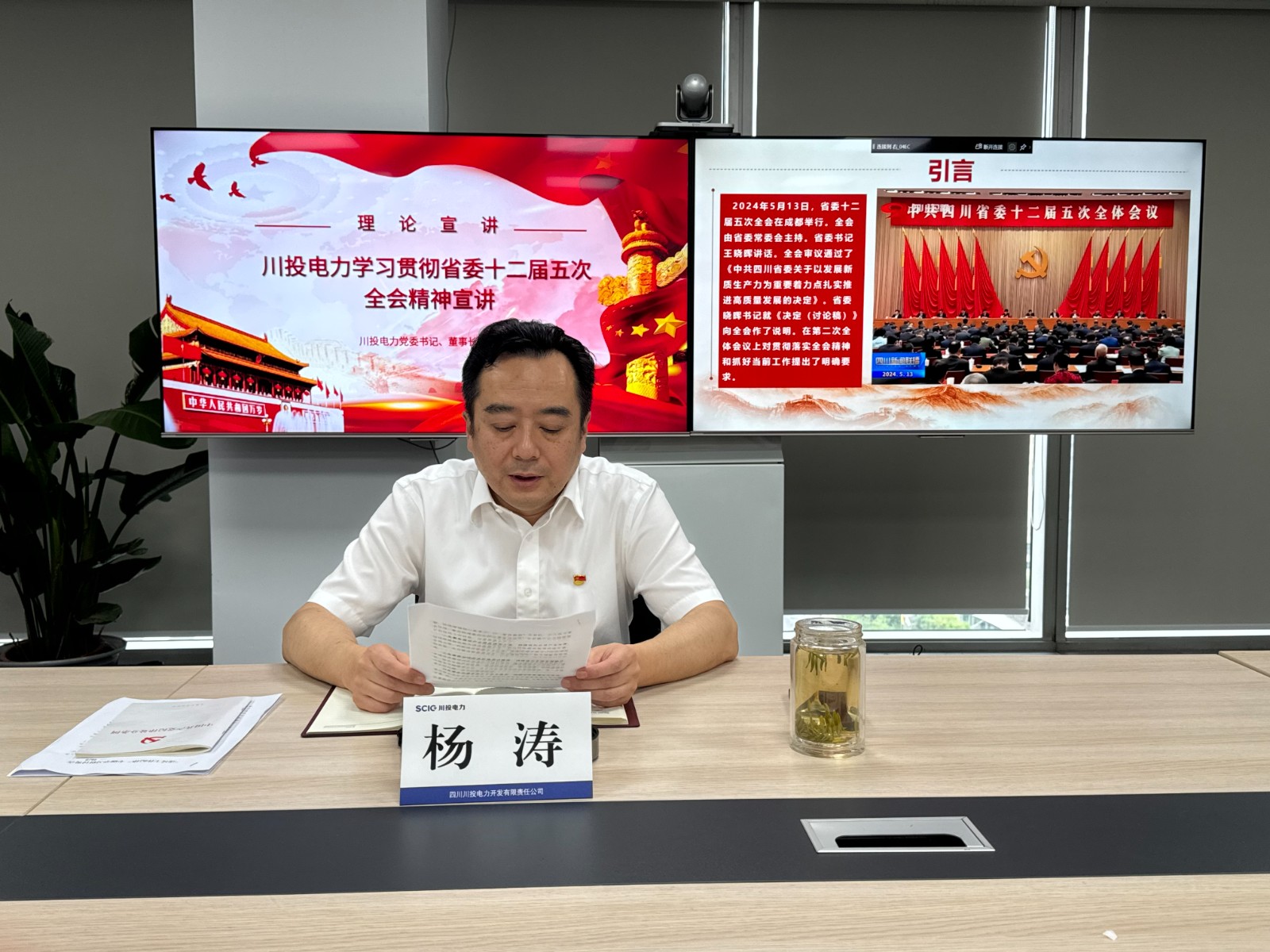 為全面深入學(xué)習(xí)宣傳貫徹省委十二屆五次全會(huì)精神,切實(shí)將公司各級(jí)黨組織和廣大黨員干部的思想行動(dòng)統(tǒng)一到省委的決策部署上來(lái),7月8日,川投電力黨委書記、董事長(zhǎng)楊濤專題宣講中共四川省委十二屆五次全會(huì)精神。