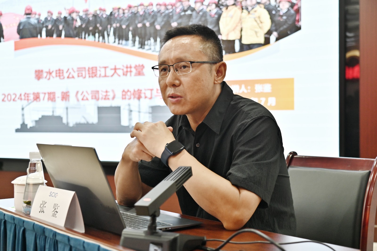 為進(jìn)一步推進(jìn)依法治企和合規(guī)管理,提高董監(jiān)高履職能力,7月11日,攀水電公司組織開展了以“新《公司法》背景下董監(jiān)高履職能力提升”為主題的第7期“銀江大講堂”,邀請攀枝花學(xué)院法學(xué)院專業(yè)教師、資深律師張鑒進(jìn)行專題授課。公司股東單位代表、董事、監(jiān)事及高管共10余人參加培訓(xùn)。
