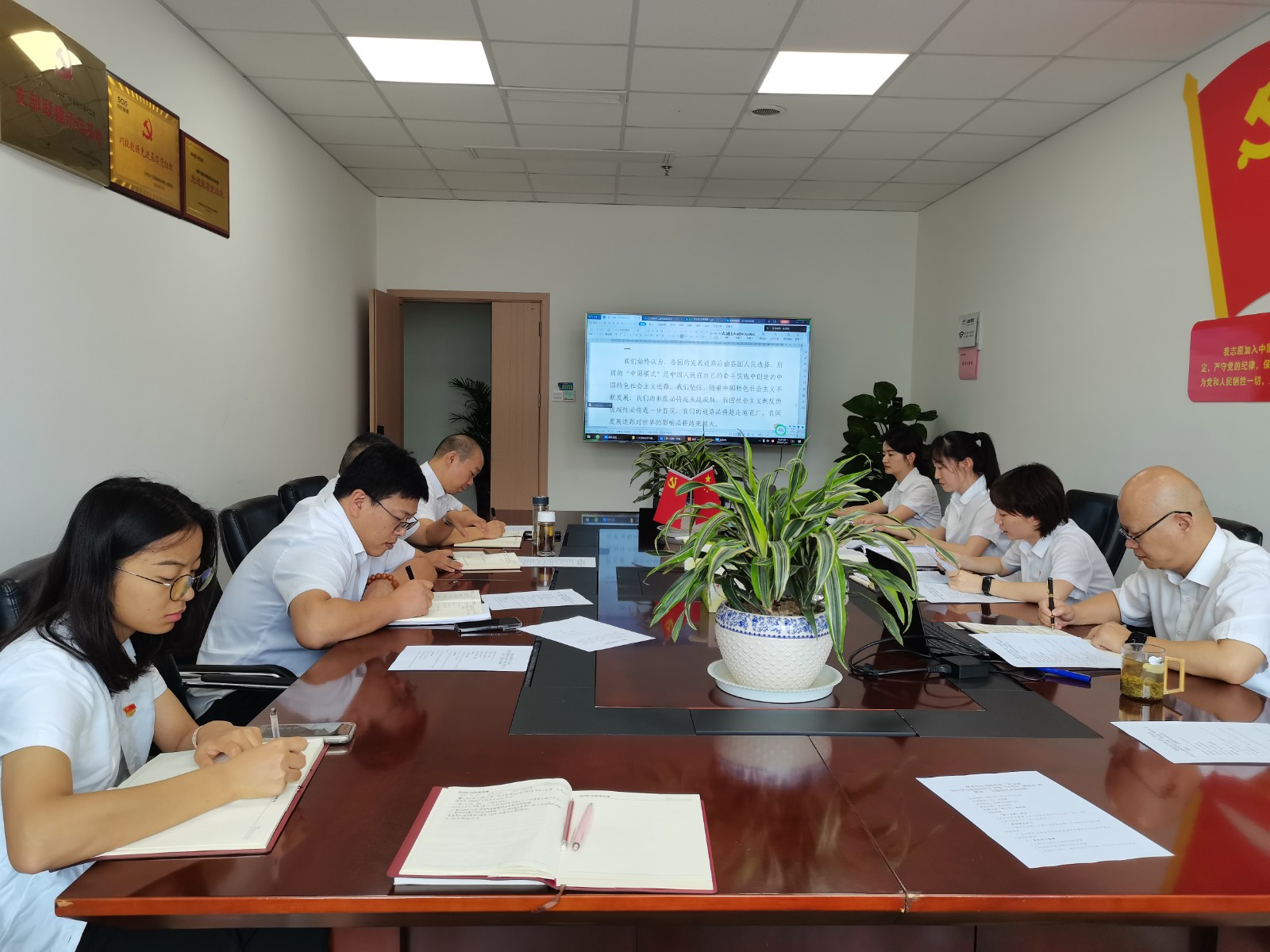 會議首先進(jìn)行了第一議題學(xué)習(xí),由支部書記周弋力領(lǐng)學(xué)了習(xí)近平總書記重要文章《必須堅持自信自立》;重點學(xué)習(xí)了中國共產(chǎn)黨第二十屆中央委員會第三次全體會議公報,傳達(dá)了王曉暉在全省縣域經(jīng)濟(jì)高質(zhì)量發(fā)展推進(jìn)會議上的講話精神;隨后,由支部書記講授了《新修訂<中國共產(chǎn)黨紀(jì)律處分條例>解讀》紀(jì)律黨課,紀(jì)檢委員盛詩棋進(jìn)行《以案為鏡鑒以廉為底線》案例剖析。參會黨員緊扣黨的六項紀(jì)律,結(jié)合自身實際情況逐一交流發(fā)言,分別從工作紀(jì)律、日常言行、家風(fēng)家教等方面進(jìn)行了研討。最后,支部委員會向大會通報了支部黨員發(fā)展相關(guān)情況。
