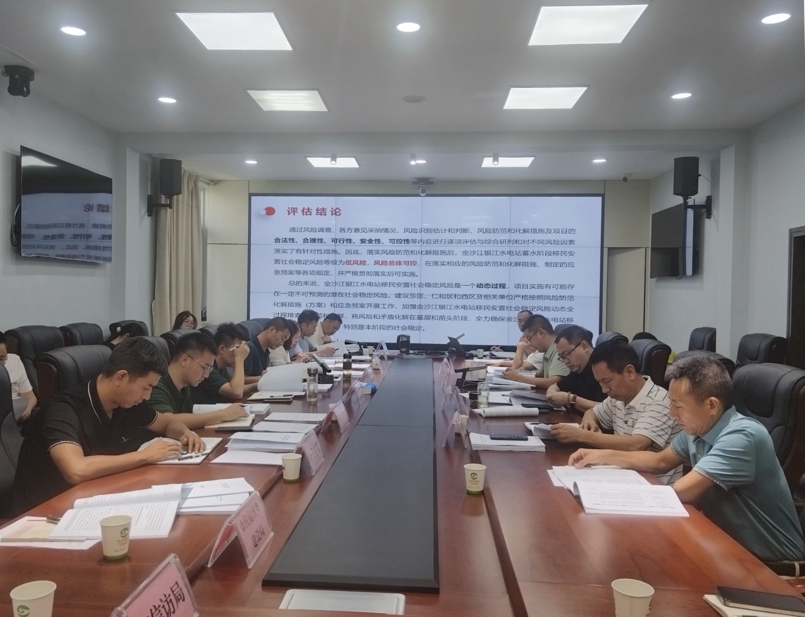 會議首先由設(shè)計單位對銀江水電站工程蓄水階段移民安置社會穩(wěn)定風(fēng)險評估報告成果進行匯報,與會人員進行了充分討論,在社會穩(wěn)定風(fēng)險識別、風(fēng)險防范和化解措施等方面提出了修改意見及建議。會議認(rèn)為,該報告內(nèi)容符合實際情況,達(dá)到《四川省社會穩(wěn)定風(fēng)險評估辦法》要求,金沙江銀江水電站工程蓄水階段移民安置社會穩(wěn)定風(fēng)險等級為低風(fēng)險,風(fēng)險總體可控。會議要求相關(guān)部門要持續(xù)抓好風(fēng)險防范工作及化解措施的執(zhí)行,確保不發(fā)生水利水電工程移民群體事件,為下一步銀江水電站工程蓄水移民安置驗收打牢基礎(chǔ)。