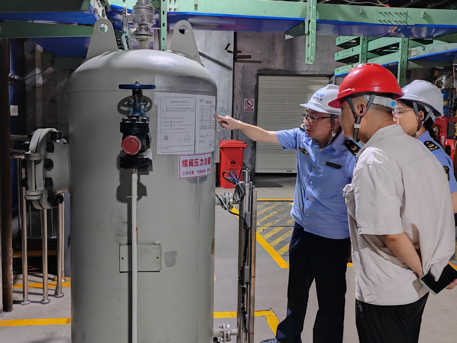 在公司職工食堂,檢查組逐一檢查了食堂操作間環(huán)境、炊具及餐具衛(wèi)生狀況,了解工作餐加工制作流程,重點對食堂管理制度建設(shè)及菜品的質(zhì)量安全把控情況進行了檢查。在鳳鳴橋車間生產(chǎn)一線,檢查組認(rèn)真聽取關(guān)于公司基本情況、安全管理體系建設(shè)、特種設(shè)備安全操作規(guī)程完善、特種設(shè)備管理員、操作人員教育培訓(xùn)、特種設(shè)備隱患排查治理長效機制等方面的情況匯報,現(xiàn)場查看橋式起重機、壓力容器等特種設(shè)備的運行情況,翻閱了特種設(shè)備檢查記錄、定檢校驗臺賬等工作資料。