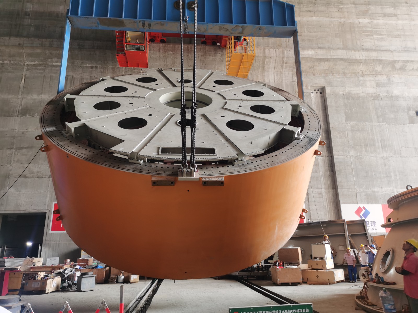 穩(wěn)中求快,加速建設(shè)。在銀江水電站的建設(shè)現(xiàn)場,機(jī)器轟鳴,焊花四濺,一片繁忙景象。攀水電公司在確保“穩(wěn)”的堅(jiān)實(shí)基礎(chǔ)上,積極踐行“快”的要求,以只爭朝夕的緊迫感,全力加快項(xiàng)目建設(shè)進(jìn)度。隨著機(jī)電安裝作業(yè)面的全面鋪開,工期緊、任務(wù)重的挑戰(zhàn)擺在眼前,攀水電公司果斷采取一系列有力措施,加大人員和設(shè)備投入,增加施工班組,延長作業(yè)時間,提高工作效率。2024年8月29日下午,在銀江水電站的機(jī)電安裝現(xiàn)場,氣氛熱烈而緊張,隨著定子的精準(zhǔn)吊裝到位,標(biāo)志著首臺機(jī)組安裝取得了重大進(jìn)展。目前銀江水電站首臺機(jī)組導(dǎo)水機(jī)構(gòu)、主軸、組合軸承、轉(zhuǎn)輪、定子、轉(zhuǎn)子均已安裝就位,為后續(xù)機(jī)組的調(diào)試和投產(chǎn)奠定了堅(jiān)實(shí)的基礎(chǔ)。