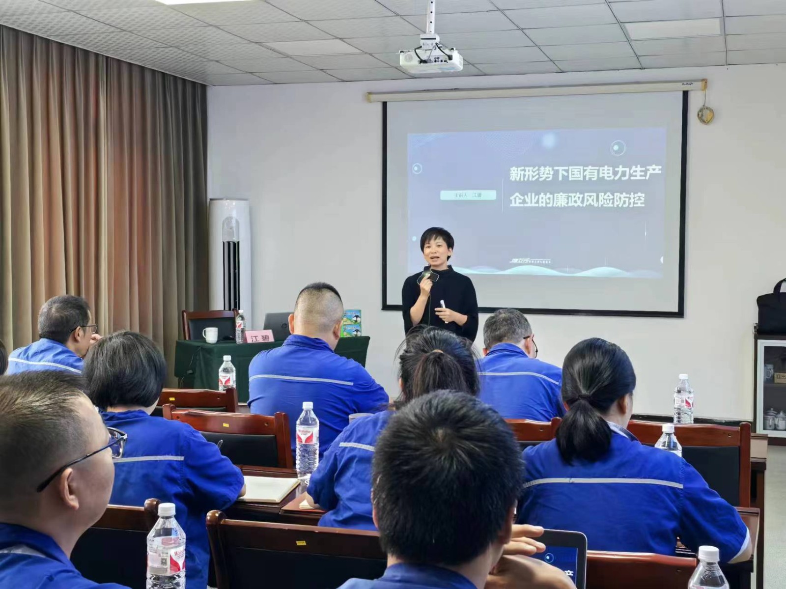 為全面提升電力生產(chǎn)企業(yè)的廉政風險防范能力,筑牢電廠干部職工拒腐防變的思想防線,近日,百花灘黨支部承辦川投電力2024年第三季度“講廉規(guī) 守廉矩”三期廉潔教育輪訓交流會,邀請洪雅縣紀委監(jiān)委駐財政局紀檢監(jiān)察組組長江碧,現(xiàn)場講授《新形勢下電力生產(chǎn)企業(yè)的廉政風險》知識講座。