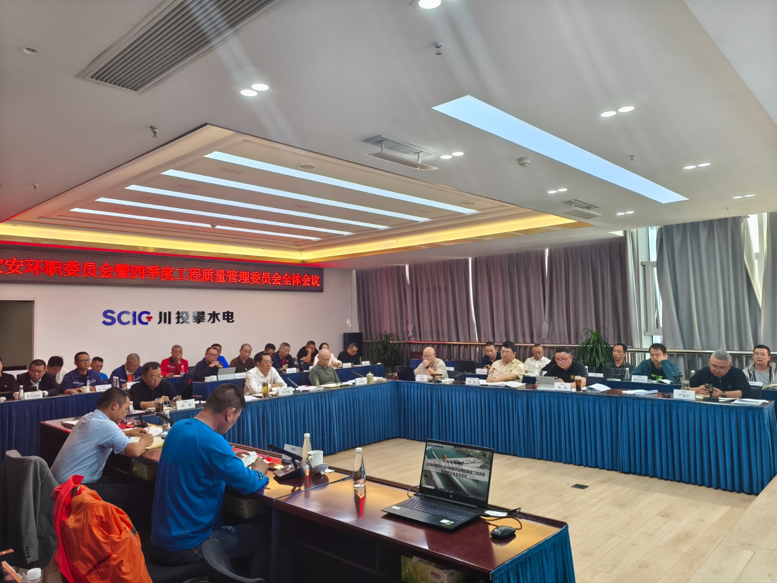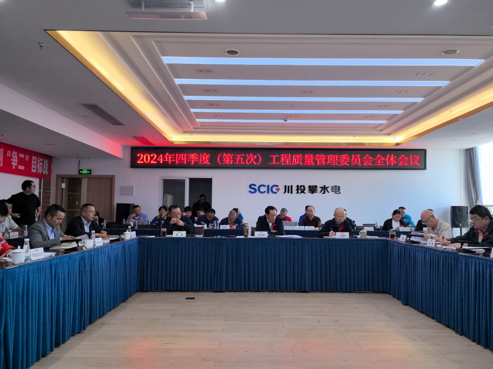11月16日下午,在銀江水電站全力沖刺首臺機組發(fā)電之際,攀水電公司在2620會議室組織召開了2024年四季度工程質量管理委員會全體會議,會議由川投能源副總經(jīng)理、攀水電公司黨總支書記、董事長、質委會主任徐孝剛主持,攀水電公司黨總支副書記、總經(jīng)理、質委會主任吳巍嶼及公司領導、各部門、長江設代處、各監(jiān)理部、第三方檢測機構、各施工單位項目部負責人及質量負責人共計40余人參加會議。