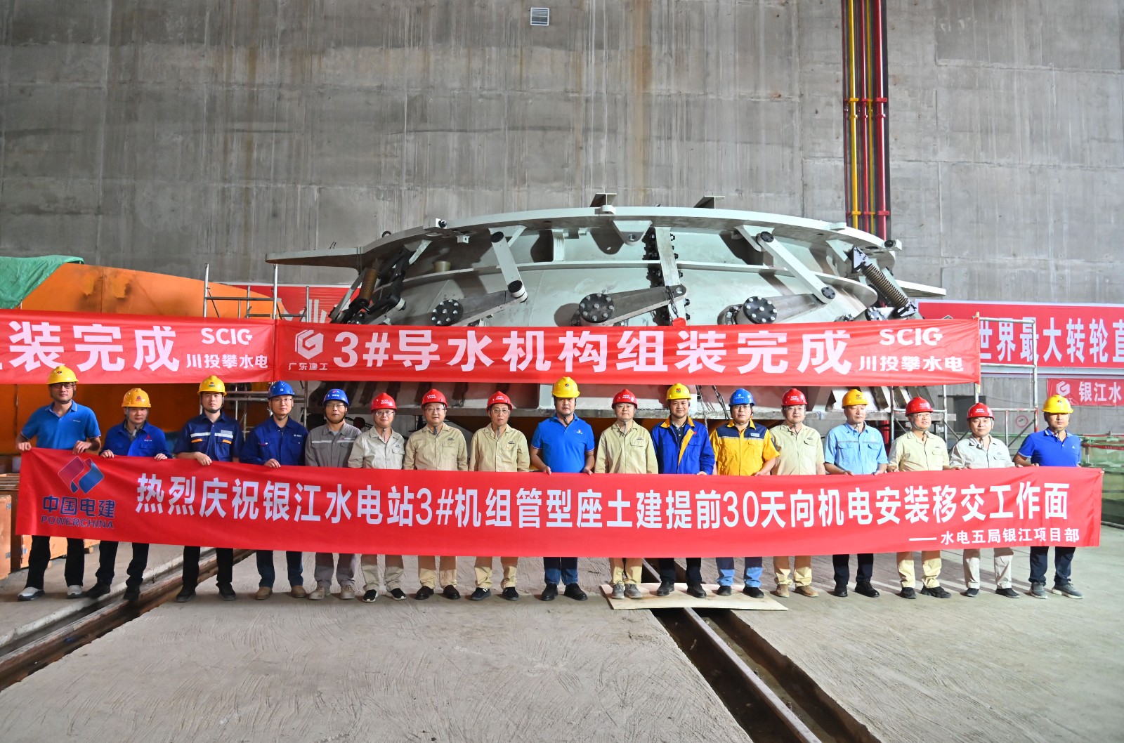 ?三期澆筑提速破局,機組拼裝全力推進。公司緊緊圍繞2025年防洪度汛和全部機組投產發(fā)電這兩個重點目標,團結帶領各參建單位,精心統(tǒng)籌、倒排工期,采取優(yōu)化設計方案、調整施工工藝、強化資源調配等一系列措施,推動工程建設始終保持高速前進的態(tài)勢。目前,銀江水電站三期工程11號至13號壩段混凝土澆筑施工全面推進,一季度實際完成的澆筑工程量超出原計劃20%;3號機組轉子組裝工作已經完成,定子組裝完成60%,導水機構、主軸等關鍵部件均已運抵現(xiàn)場并正在加緊組裝;3號機組管形座二期混凝土澆筑完成 50%;5號、6號機組管形座安裝分別完成90%、60%,正朝著2025年底全面建成投產的目標全力奮進。
