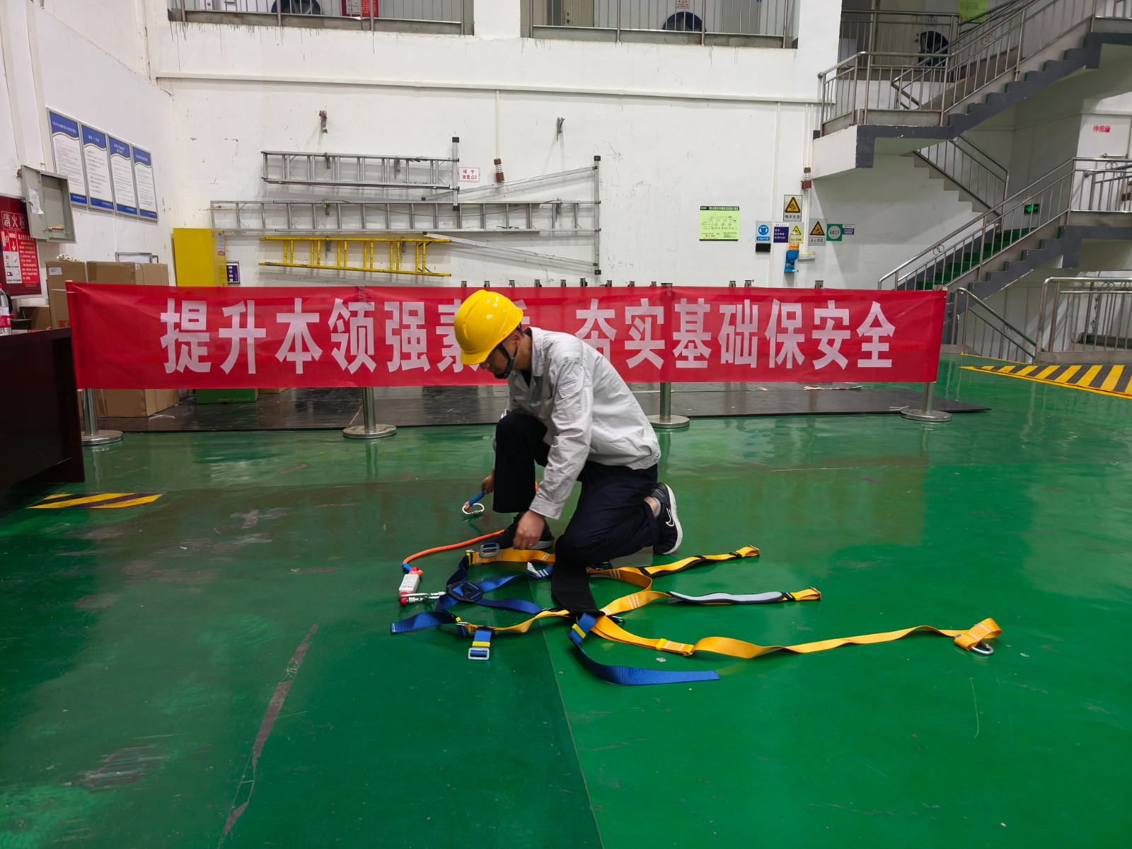 此次賽項(xiàng)設(shè)置緊扣生產(chǎn)需求,共分為理論答題、實(shí)操及模擬操作三部分。理論答題重點(diǎn)考察電力安全規(guī)程、電廠運(yùn)行規(guī)程及電氣專業(yè)知識(shí)。實(shí)操環(huán)節(jié)要求參賽選手在規(guī)定時(shí)間內(nèi)完成對(duì)正壓式空氣呼吸器和五點(diǎn)式安全帶的檢查及穿戴操作,重點(diǎn)考核佩戴規(guī)范性和應(yīng)急響應(yīng)速度及檢驗(yàn)選手對(duì)高空作業(yè)防護(hù)措施的掌握程度。模擬操作“220kV田爾線單相永久接地”和“發(fā)電機(jī)著火事故”項(xiàng)目最具挑戰(zhàn)性,要求選手在模擬故障發(fā)生后迅速判斷情況,按照標(biāo)準(zhǔn)化流程組織處置,選手們既要展示專業(yè)技術(shù)能力,又要體現(xiàn)團(tuán)隊(duì)協(xié)作和組織協(xié)調(diào)能力。競(jìng)賽過(guò)程中,選手們爭(zhēng)分奪秒、全力以赴,精細(xì)操作、認(rèn)真作答,充分展現(xiàn)了精益求精、拼搏進(jìn)取的精神風(fēng)貌。
