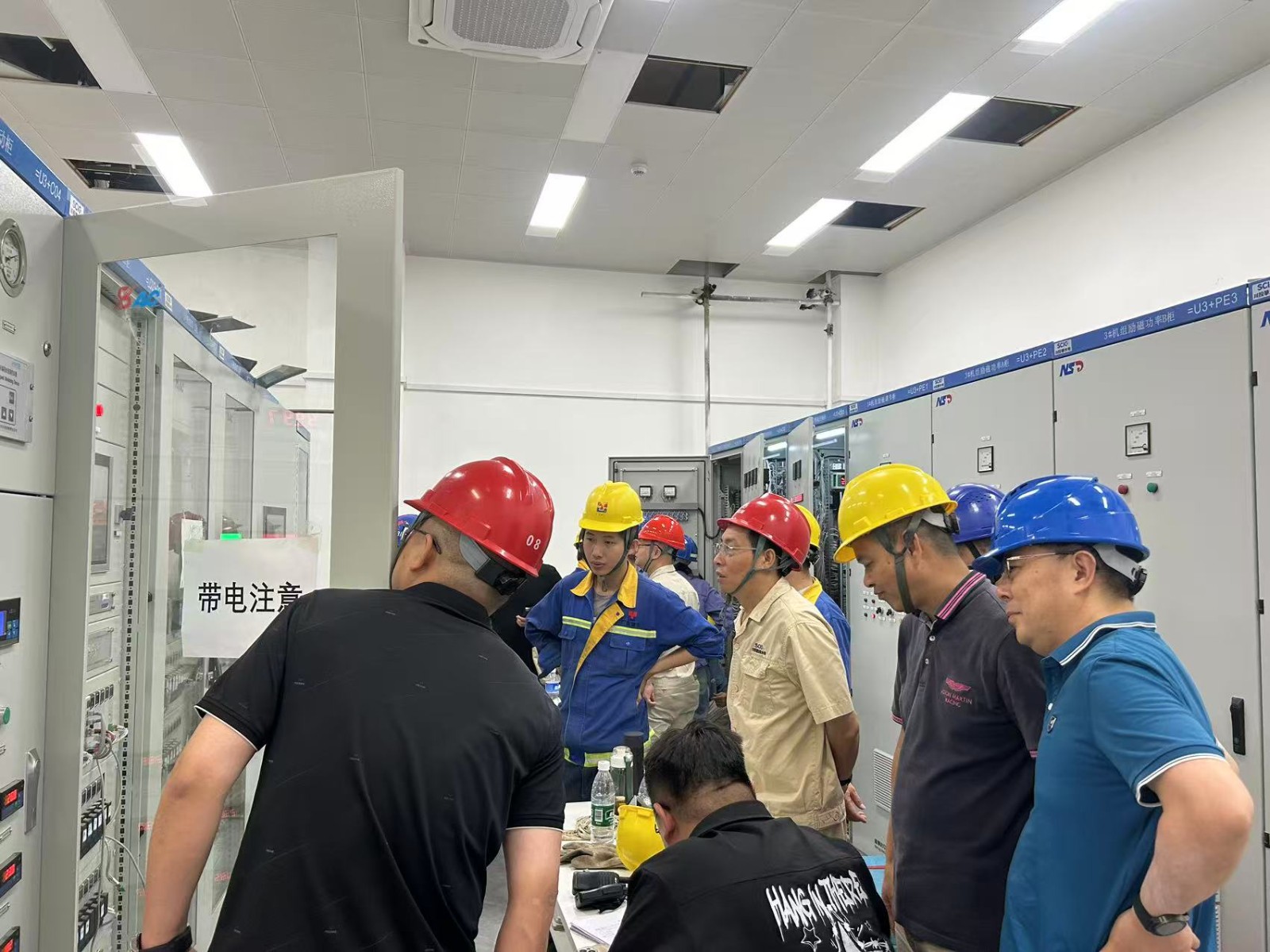 2025年攀枝花汛期比往年來的更早一些,為保障銀江水電站順利度汛和后續(xù)機(jī)組順利安裝,5月31日3號機(jī)組必須完成開機(jī)啟動,具備過流條件。為此,進(jìn)入5月以來,公司帶領(lǐng)各參建單位日夜奮戰(zhàn)在施工現(xiàn)場,實(shí)行公司領(lǐng)導(dǎo)承包劃片進(jìn)行工作督導(dǎo),施工現(xiàn)場經(jīng)常深夜還能看見公司領(lǐng)導(dǎo)現(xiàn)場忙碌的身影,經(jīng)過不懈努力先后完成了3號機(jī)組主機(jī)、輔機(jī)、調(diào)速器、機(jī)組油、氣和水系統(tǒng)、計(jì)算機(jī)監(jiān)控系統(tǒng)、勵(lì)磁系統(tǒng)、繼電保護(hù)系統(tǒng)等設(shè)備的安裝調(diào)試工作。5月30日隨著尾水事故閘門充水閥緩慢打開,3號機(jī)組流道開始充水,5月31日檢查燈炮體、管形座、流道蓋板、導(dǎo)水機(jī)構(gòu)及各排水閥等各部位正常,3號機(jī)組各系統(tǒng)單體、聯(lián)調(diào)正常,隨著指揮長徐孝剛一聲令下,3號機(jī)組手動啟動,并成功升速至100%額定轉(zhuǎn)速,機(jī)組振動、擺度、瓦溫等各項(xiàng)指標(biāo)優(yōu)良,機(jī)組運(yùn)行狀態(tài)穩(wěn)定,首次啟動成功。