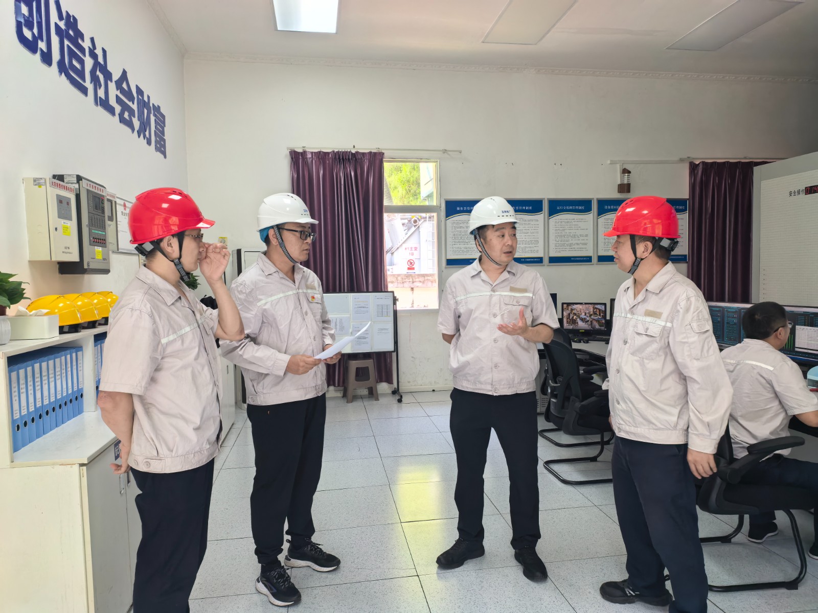 楊濤一行深入大壩、主副廠房、中控室、升壓站等關(guān)鍵區(qū)域,圍繞水工建筑物安全度汛、機(jī)組運行工況、設(shè)備檢修維護(hù)、消防設(shè)施配備及應(yīng)急物資儲備等方面,逐項排查風(fēng)險隱患。檢查中,楊濤強(qiáng)調(diào),要堅持“人民至上、生命至上”理念,以極限思維將防汛減災(zāi)措施細(xì)化落實到最小單元,堅決守牢安全底線;針對大壩落石風(fēng)險,要求電廠研究采用遠(yuǎn)程監(jiān)視和控制方式,保障大壩值班人員安全,同時進(jìn)一步改善員工住宿條件。