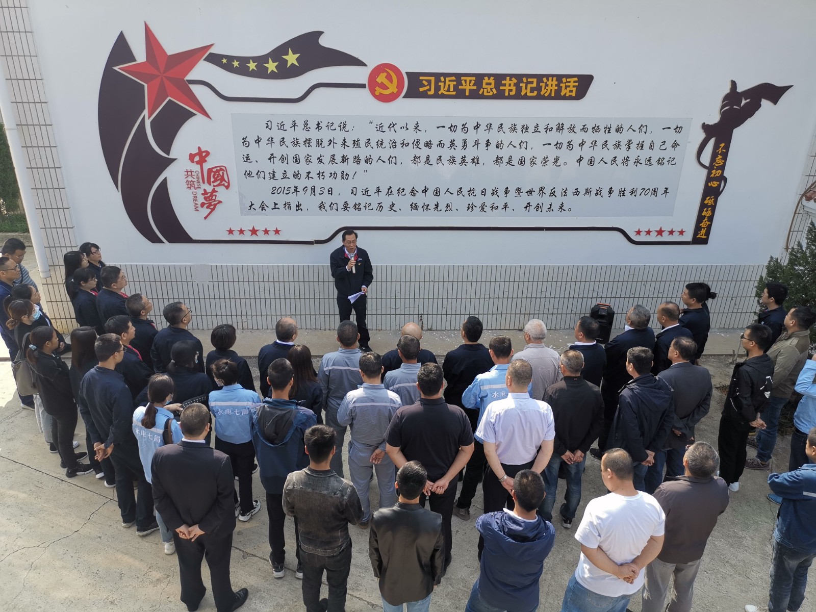 蒼松翠柏掩映下革命烈士紀念碑巍然聳立,伴隨著鏗鏘激昂的《義勇軍進行曲》,全體人員齊聲高唱中華人民共和國國歌。國歌唱畢,全場肅立,向革命英烈默哀致敬。之后,公司黨總支副書記、總經(jīng)理蔡承德帶領(lǐng)全體黨員重溫了入黨誓詞。公司黨總支書記、董事長徐孝剛代表全體人員向革命英烈敬獻花籃,并駐足凝視、仔細整理花籃緞帶。敬獻花籃儀式結(jié)束后,全體人員對烈士紀念碑和烈士墓進行了祭掃,徐孝剛以《為了共同的事業(yè)》為題,背靠習近平總書記紀念抗日戰(zhàn)爭暨世界反法西斯戰(zhàn)爭勝利70周年大會講話照壁,講授了一堂生動的黨史學習微黨課。