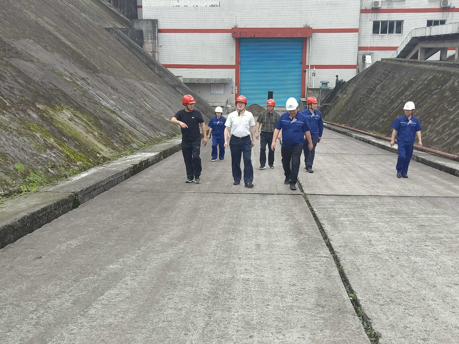 5月21日中午, 川投能源黨委委員、副總經(jīng)理?xiàng)钇皆诖ㄍ峨娏Ω笨偨?jīng)理王偉、陳云明陪同下,到百花灘電站檢查指導(dǎo)防汛工作。