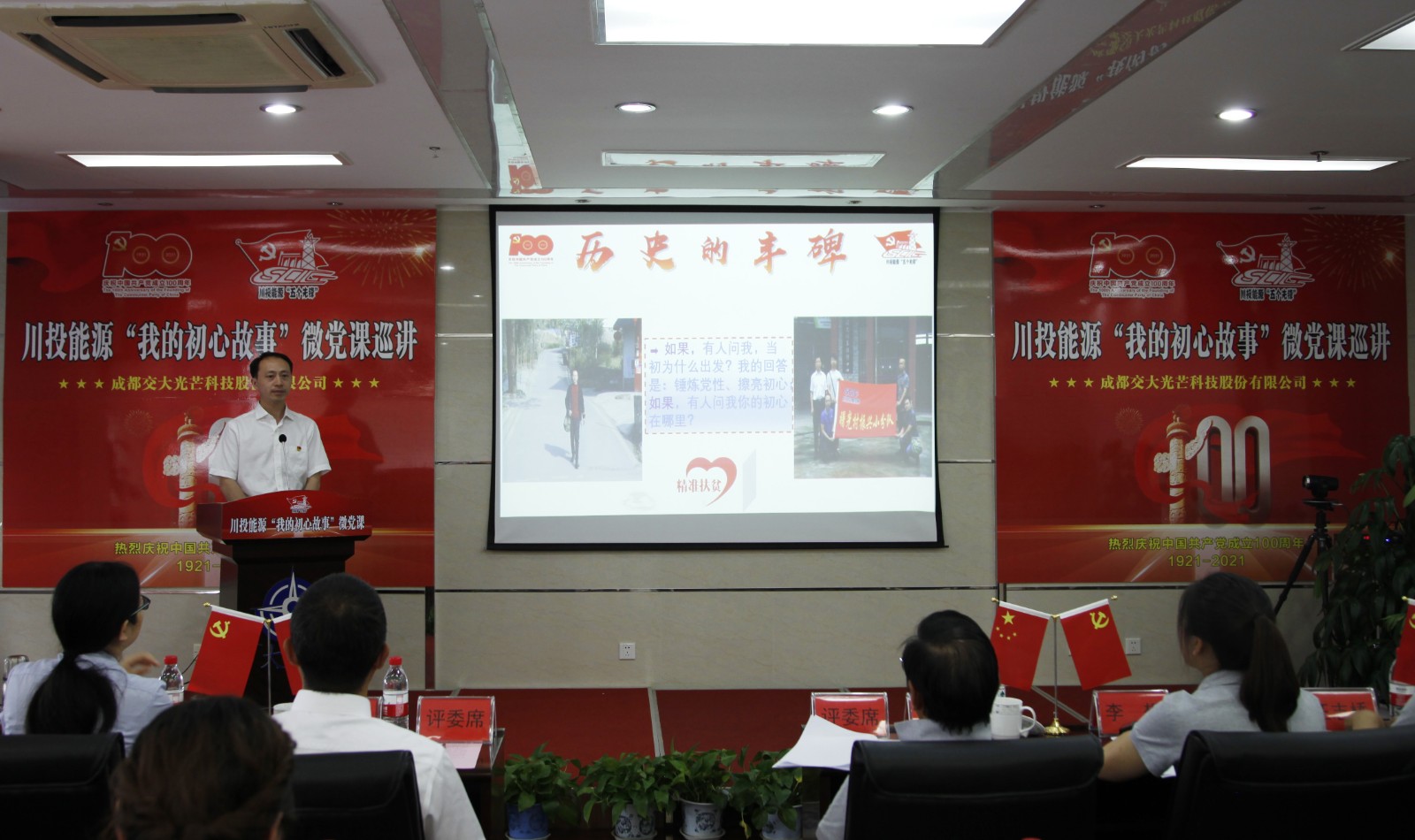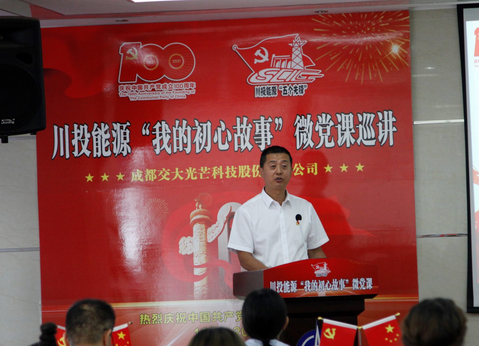 在全黨深入開展黨史學(xué)習(xí)教育之際,5月25日,川投能源“我的初心故事”微黨課巡講團(tuán)走進(jìn)交大光芒。微黨課巡講團(tuán)由能源本部、天彭電力、槽漁灘公司、交大光芒、川投電力和攀水電公司選派的6名優(yōu)秀黨員代表組成。川投能源黨委副書記、工會主席楊超龍,交大光芒黨總支書記、總經(jīng)理劉成輝和交大光芒黨員、員工代表30余人參加本次活動。
