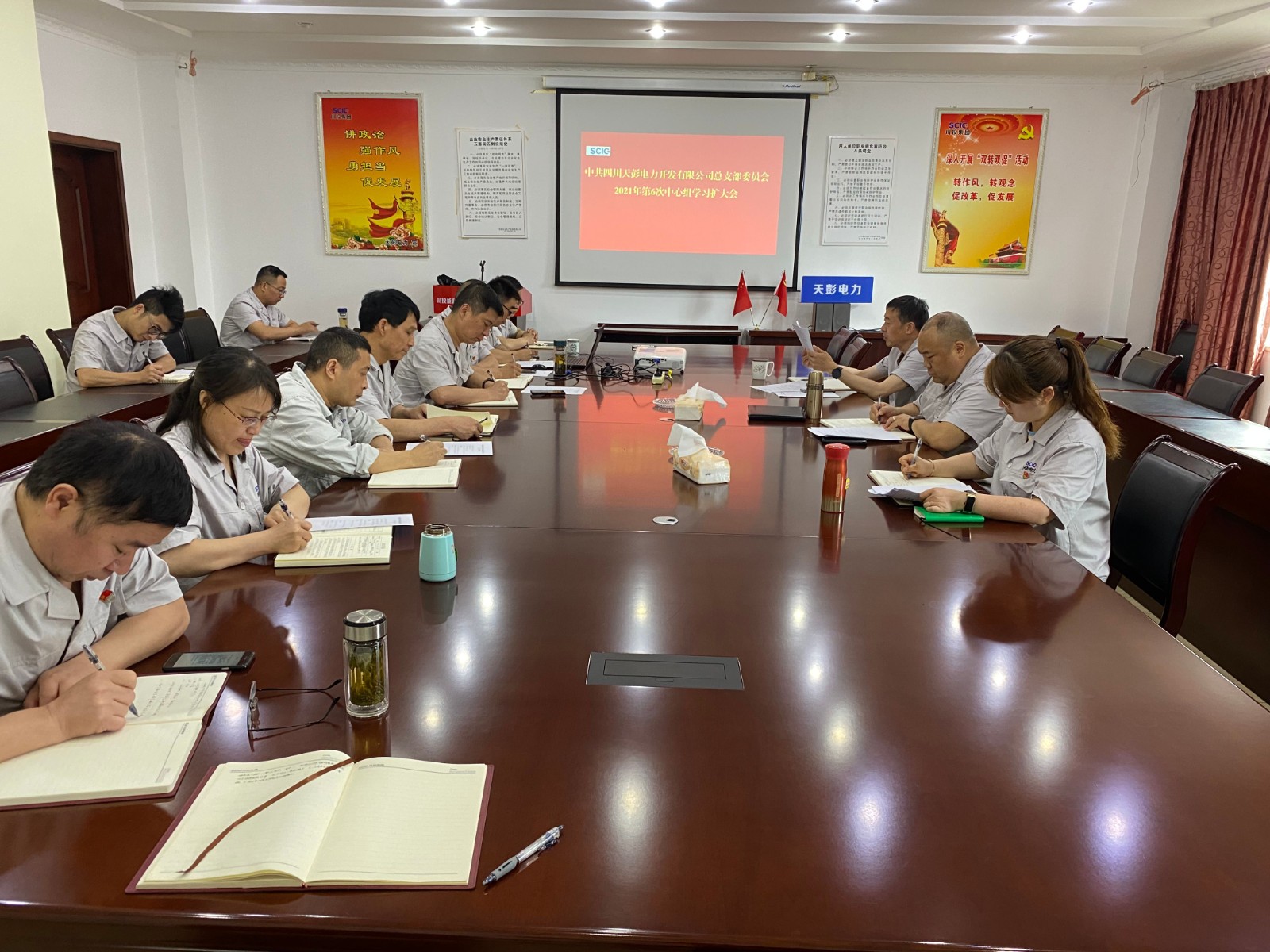 6月8日上午,川投能源天彭電力黨總支在公司二樓會議室召開2021年第6次中心組學習(擴大)會,公司領導、黨員干部和關鍵崗位人員參加會議,會議由黨總支書記、總經(jīng)理陳忠主持。