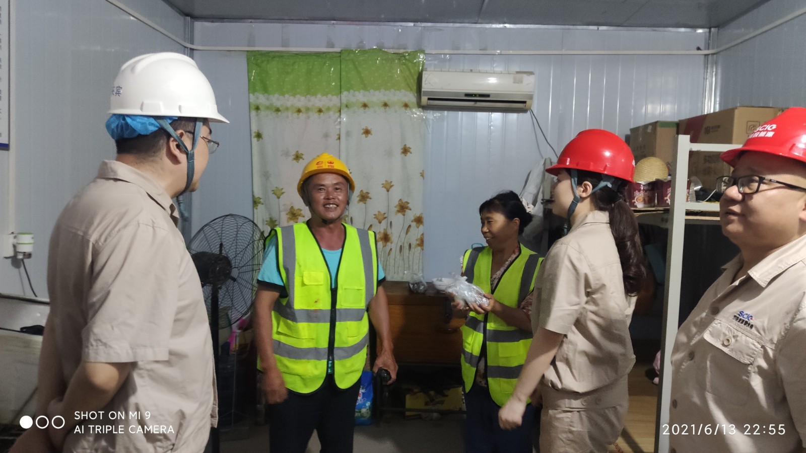 6月13日端午節(jié)前夕深夜,公司值班領(lǐng)導(dǎo)、黨總支委員、董事會秘書、工會主席鄧勇,總經(jīng)理助理唐伽帶領(lǐng)值班人員,對銀江水電站工地現(xiàn)場防洪度汛值班點位及施工現(xiàn)場進(jìn)行了檢查;公司志愿者服務(wù)隊共計10余人對節(jié)日期間堅守在銀江水電站工地夜間施工的一線人員進(jìn)行了慰問。