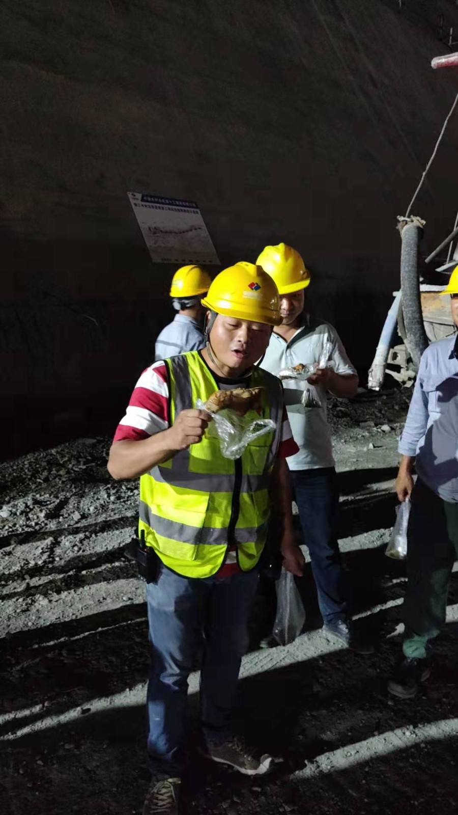 當(dāng)日下午公司志愿者就開始忙活起來,鹵雞腿、包粽子、煮鹽蛋,采用流水線工作方式,把熱乎乎的雞腿、粽子、咸鴨蛋等進(jìn)行分裝,方便工友在工地食用。晚上十點,慰問人員分成三組,分別前往康家溝渣場、銀江大橋、導(dǎo)流明渠、砂石骨料加工系統(tǒng)、混凝土生產(chǎn)系統(tǒng)等值班點位和夜間施工現(xiàn)場,將慰問品送到一線工友們的手中,對端午佳節(jié)期間依然奮戰(zhàn)在施工一線的人員致以親切問候,對大家咬緊牙關(guān)、不畏疲勞、迎難而上的工作態(tài)度表示充分肯定,對大家舍小家顧大家的奉獻(xiàn)精神致以崇高敬意,同時叮囑大家一定要注意身體健康和夜間施工安全。